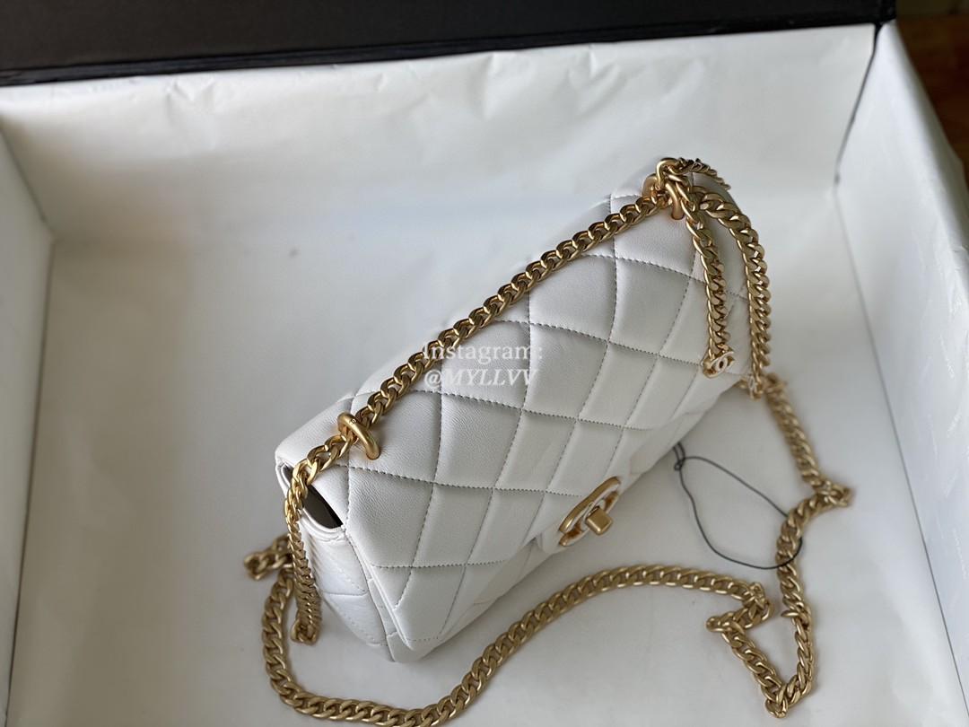 Dimension: 22.0 cm Top Quality Version:MYLLVV » Chanel Diamond Plaid Lambskin Shoulder Bag White With Gold 3114