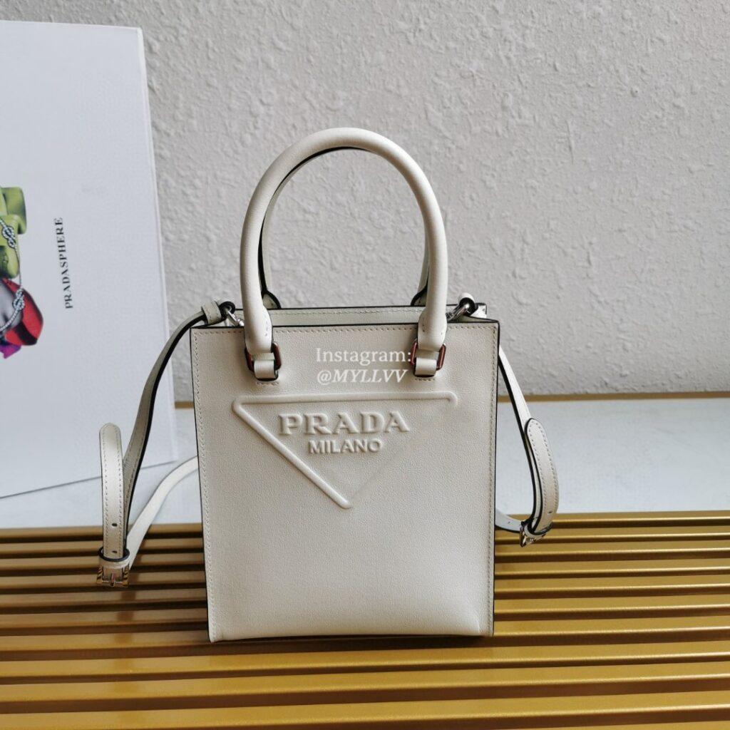 Top Quality Version:MYLLVV » Prada White Leather Handbag 1BA333