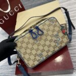 Gucci GG Canvas Small Crossbody BAG Brown Cavas Blue Snake Pattern
