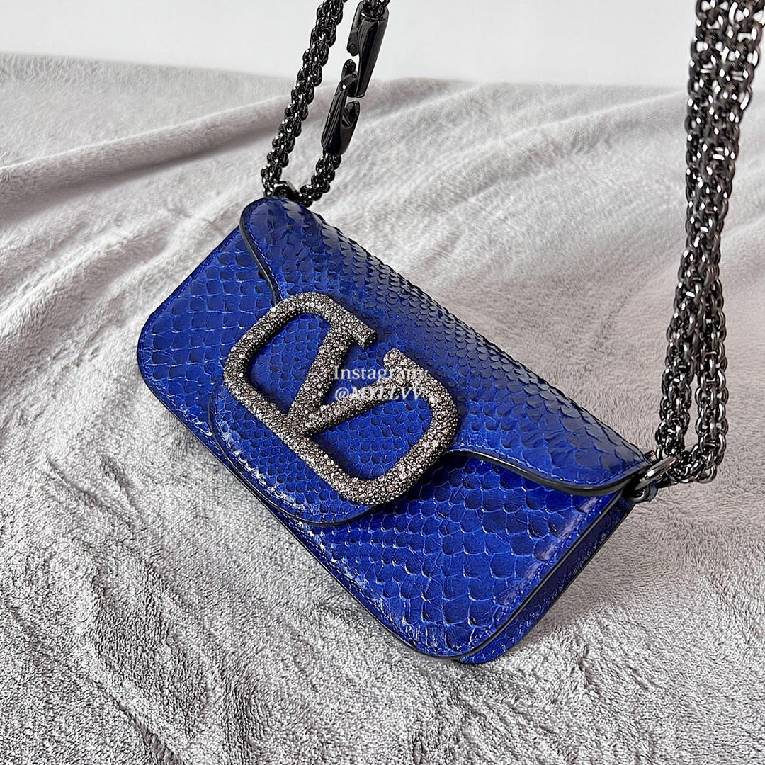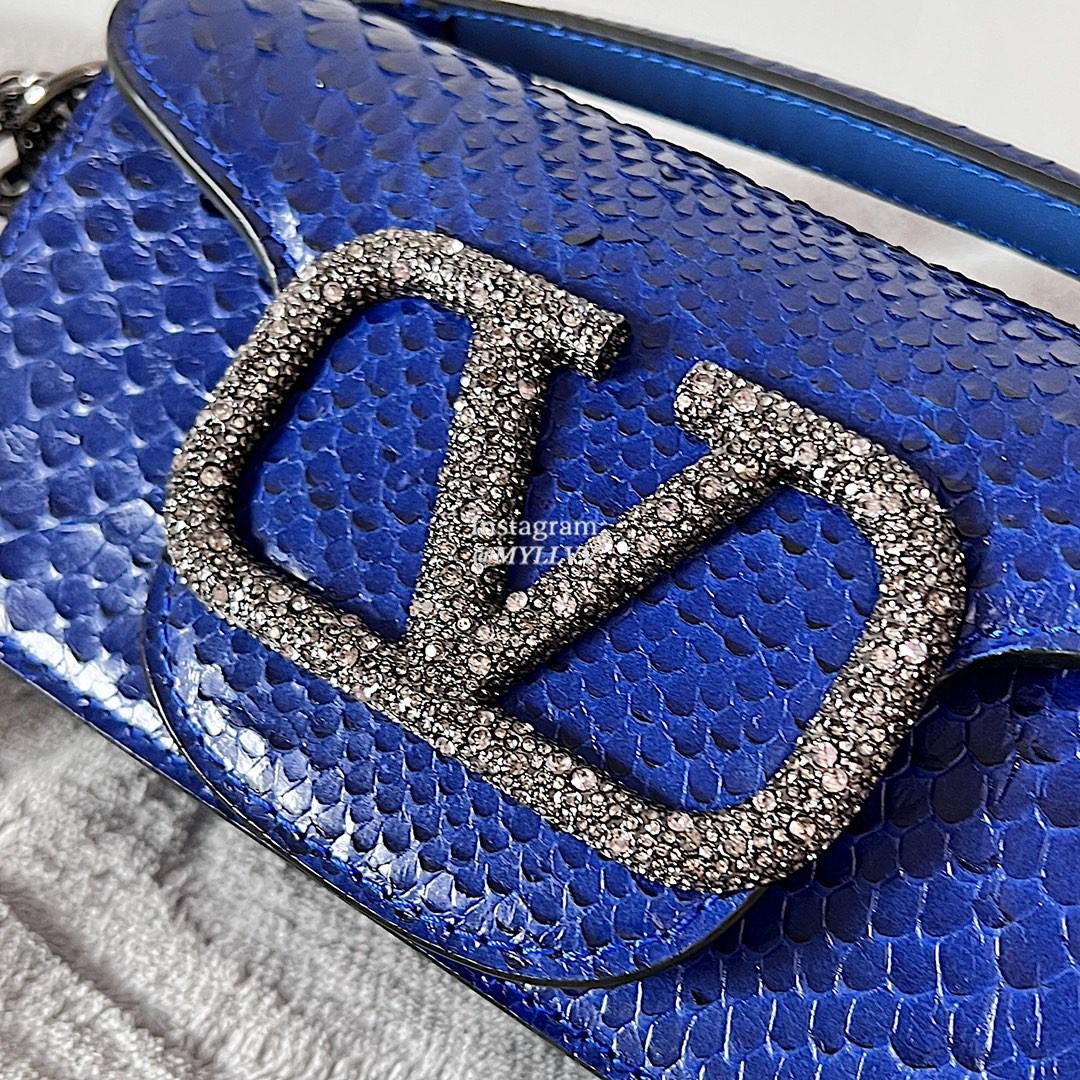 Top Quality Version:MYLLVV » Valentino Snake Skin Diamond V Logo Signature Mini Loco Bag Blue 22011s