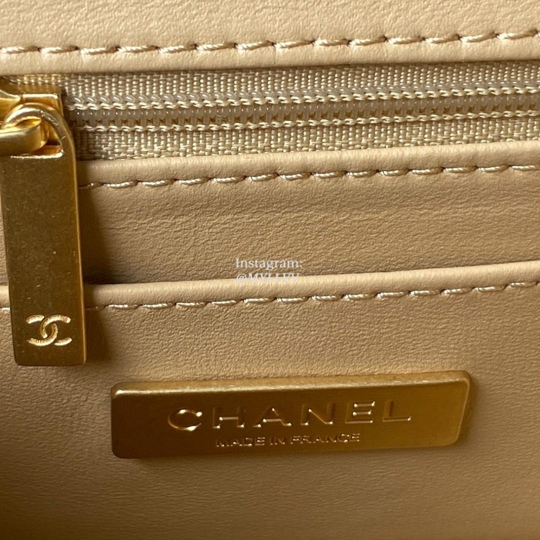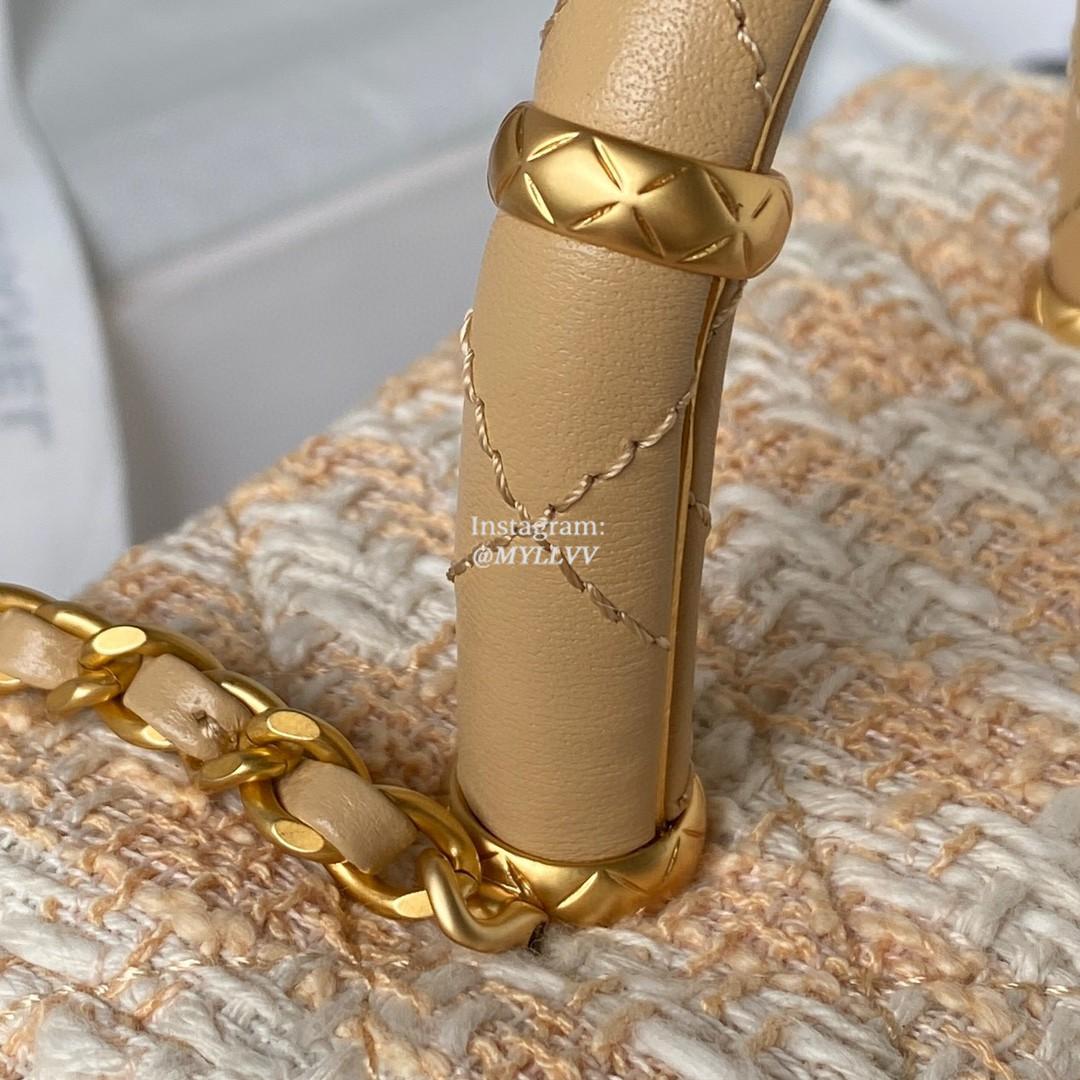 Top Quality Version:MYLLVV » Chanel Diamond Plaid Wool Lambskin Handle Cosmetic Bag Apricot With Gold AS3973