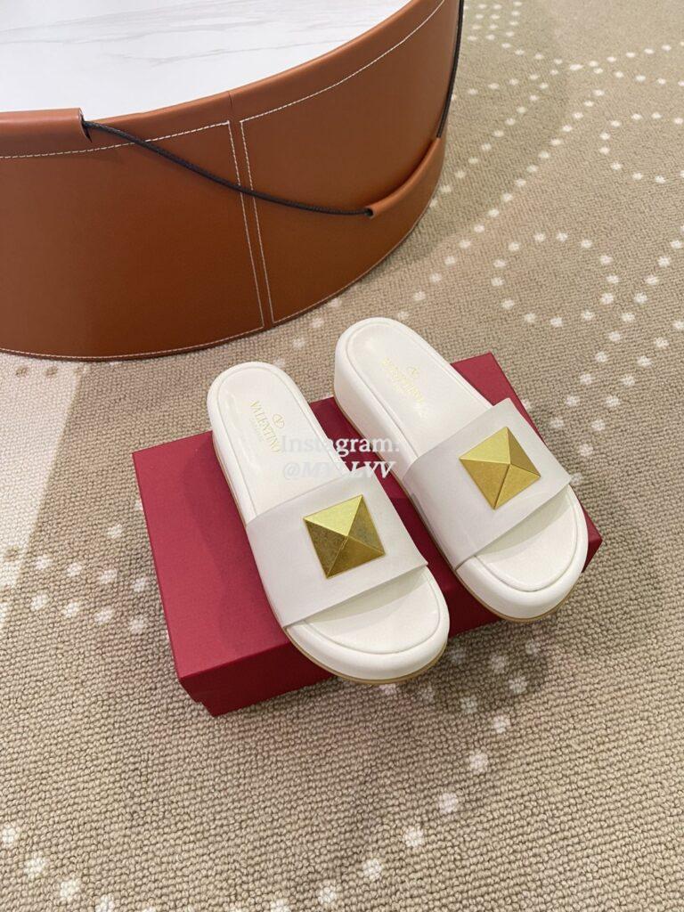 Top Quality Version:MYLLVV » Valentino Garavani Gold Rivet Lambskin Thick Bottom Slipper Shoe White