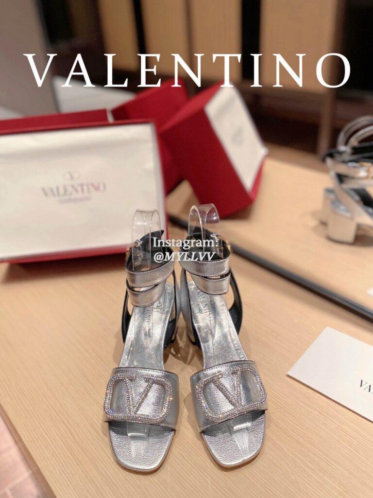 Top Quality Version:MYLLVV » Valentino Diamonds V Cowhide High Heel Sandal Shoe Silver