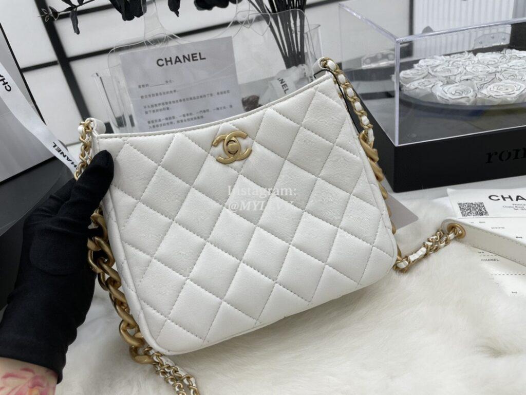 Top Quality Version:MYLLVV » Chanel Diamond Plaid Cowhide Hobo Handbag White With Gold AS3111