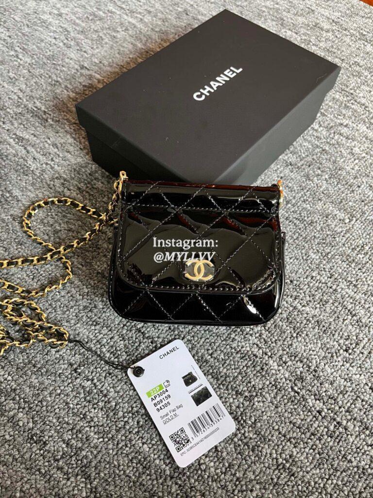 Top Quality Version:MYLLVV » Chanel Diamond Plaid Patent Leather Shoulder Bag Black With Gold AP3004