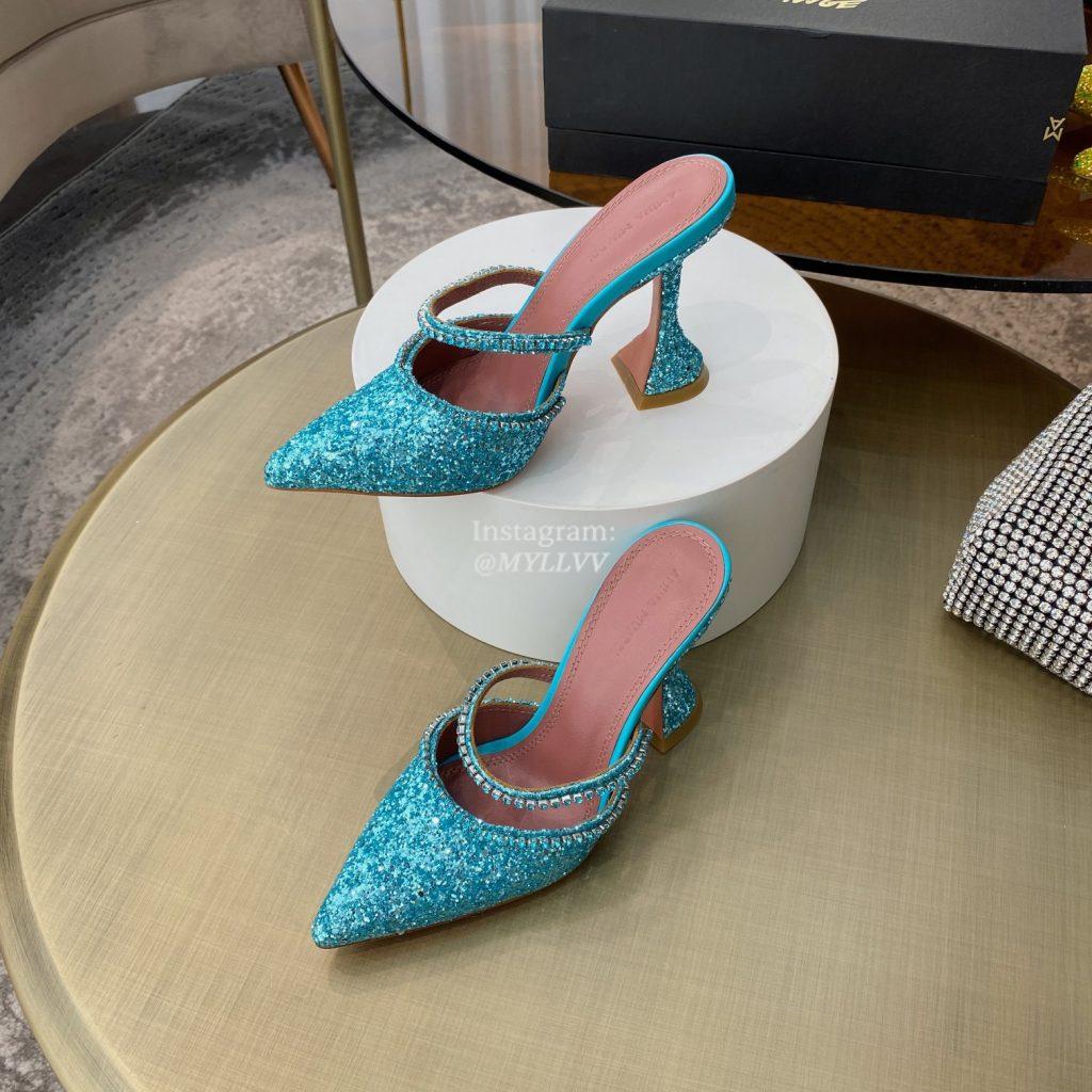Top Quality Version:MYLLVV » Amina Muaddi star sequins Swarovski crystal high heel slippers (Shiny Blue)