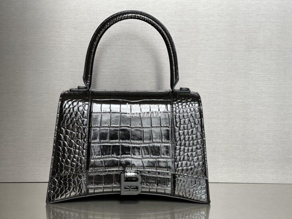 Top Quality Version:MYLLVV » Balenciaga All Black Crocodile Skin Hourglass Medium Handbag 127