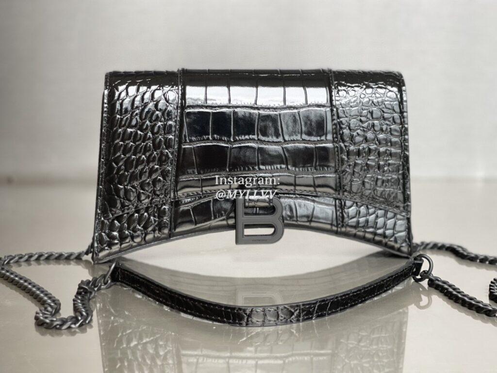 Top Quality Version:MYLLVV » Balenciaga All Black Crocodile Skin Hourglass Wallet On Chain 198