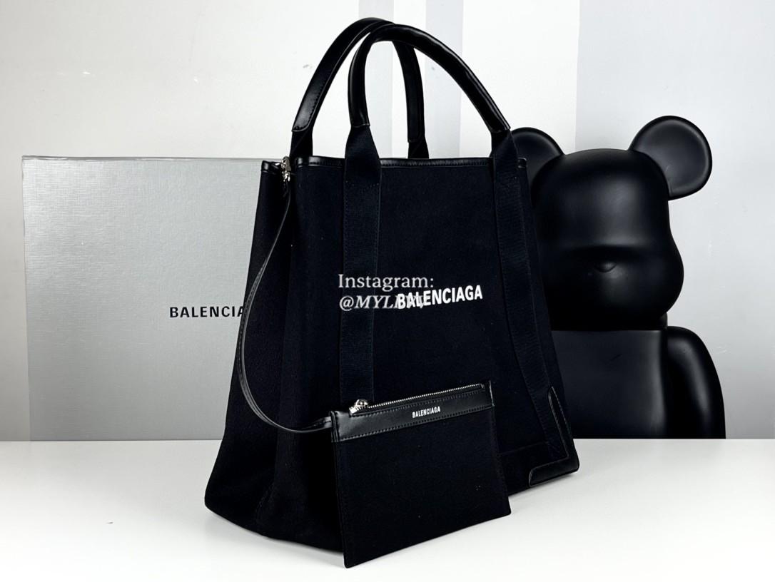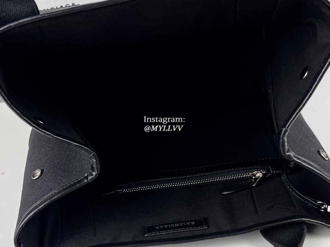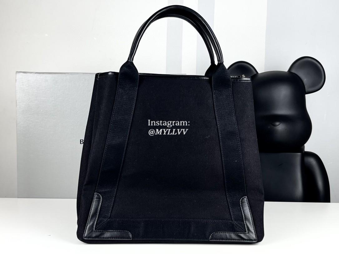 Dimension: 35.0 cm Top Quality Version:MYLLVV » Balenciaga Black Cotton Canvas Navy Medium Cabas Handbag