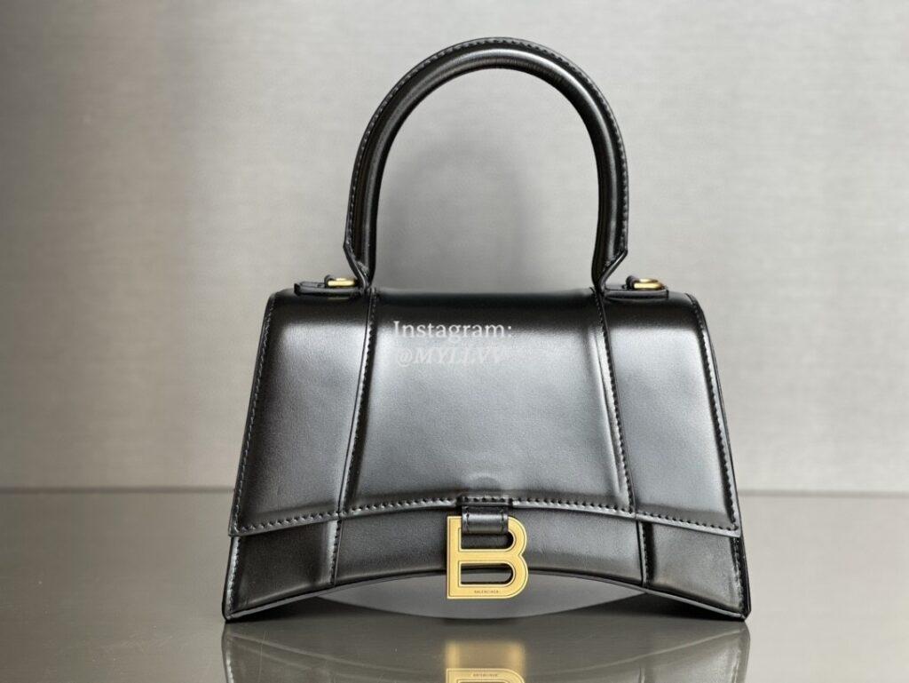 Top Quality Version:MYLLVV » Balenciaga Black Gold Cowhide Leather Hourglass Small Handbag 127