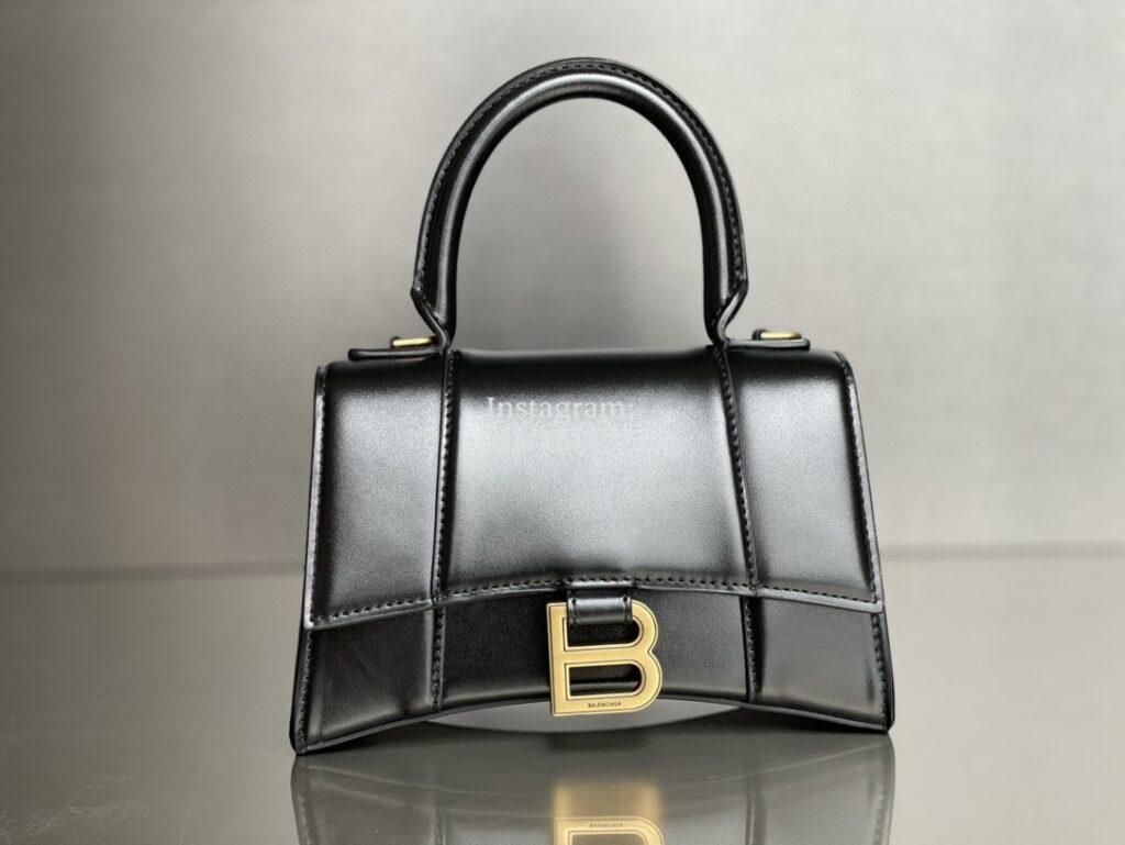 Top Quality Version:MYLLVV » Balenciaga Black Gold Cowhide Leather Hourglass XS Handbag 127