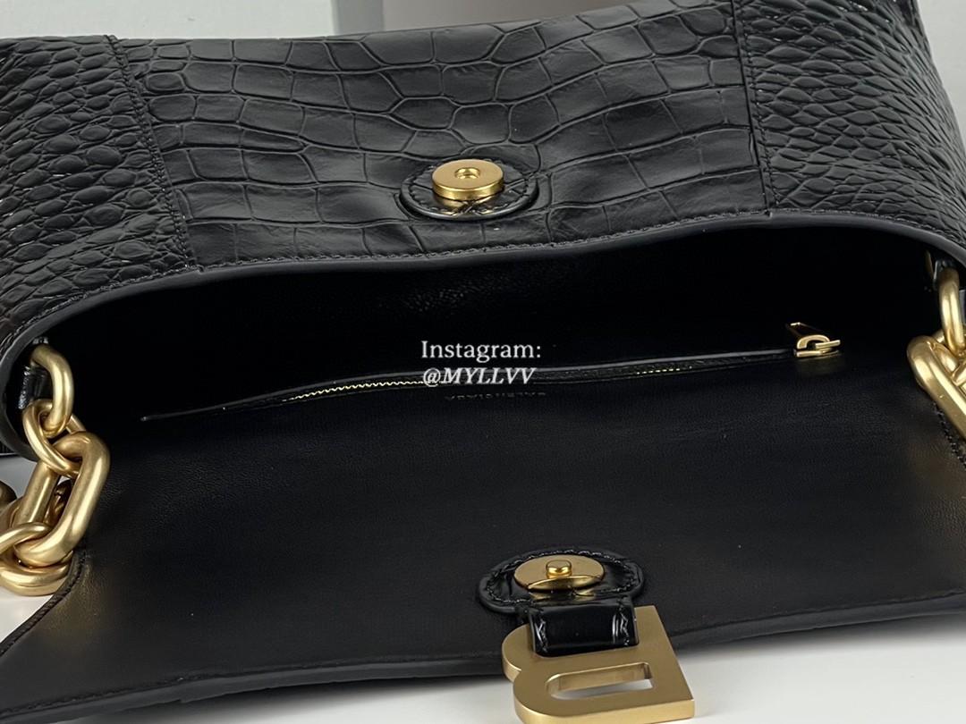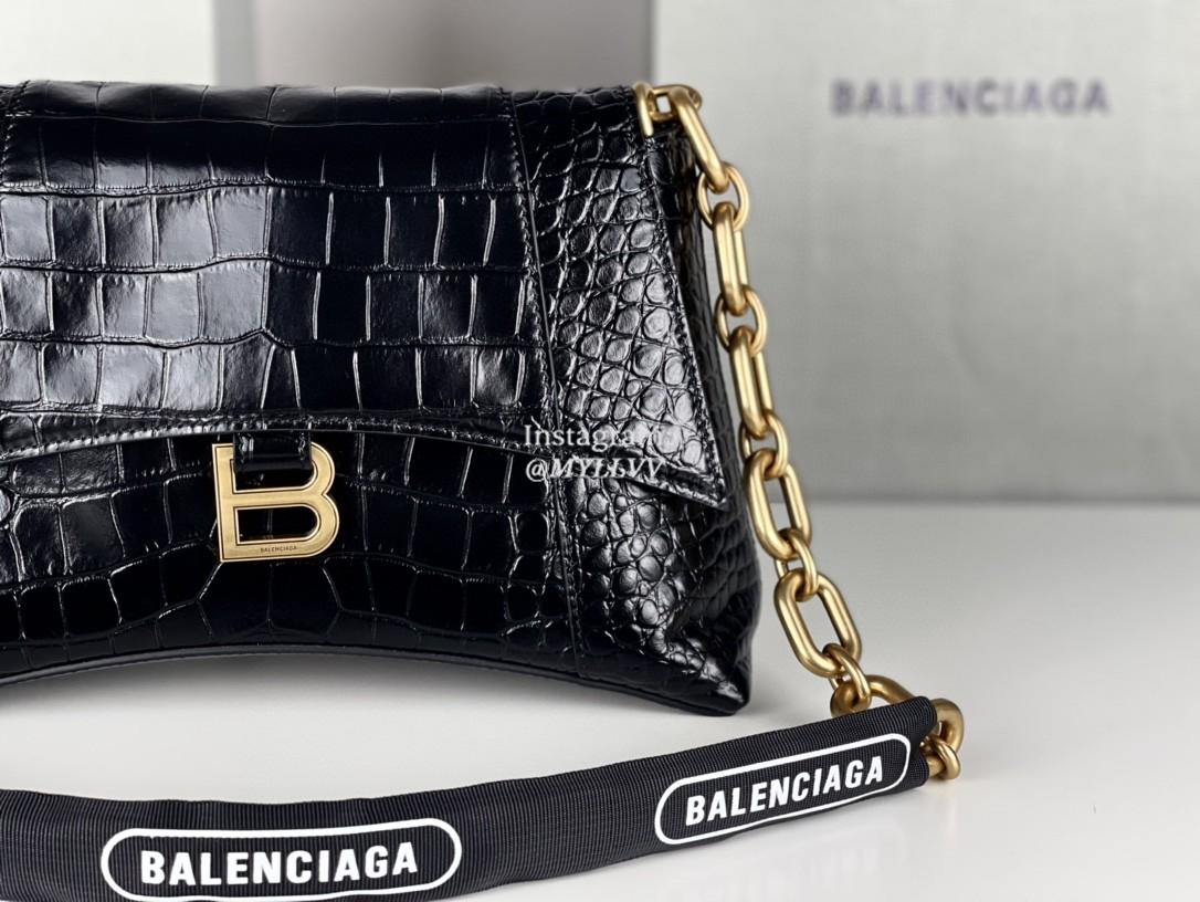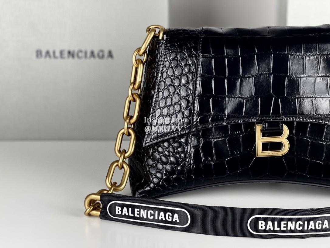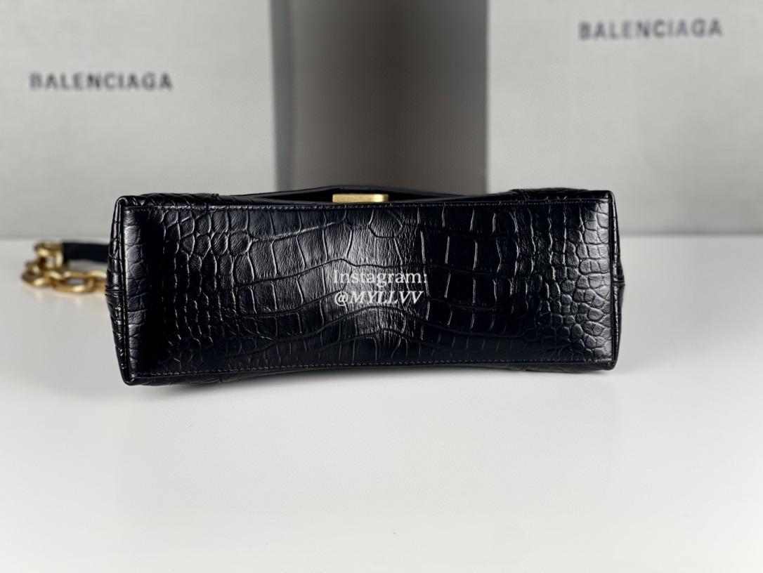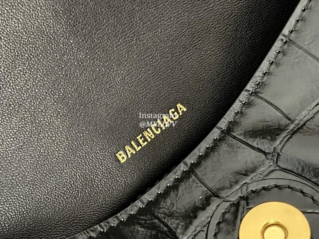 Top Quality Version:MYLLVV » Balenciaga Black Gold Crocodile Skin Downtown Small Shoulder Bag 166