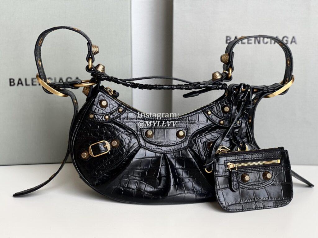 Top Quality Version:MYLLVV » Balenciaga Black Gold Crocodile Skin Le Cagole XS Shoulder Bag 701