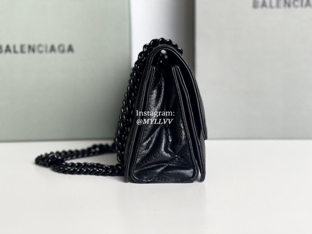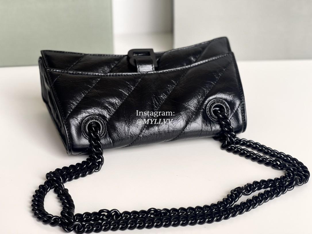 Top Quality Version:MYLLVV » Balenciaga Black Oil Wax Cowhide Leather Crush Small Chain Bag 151