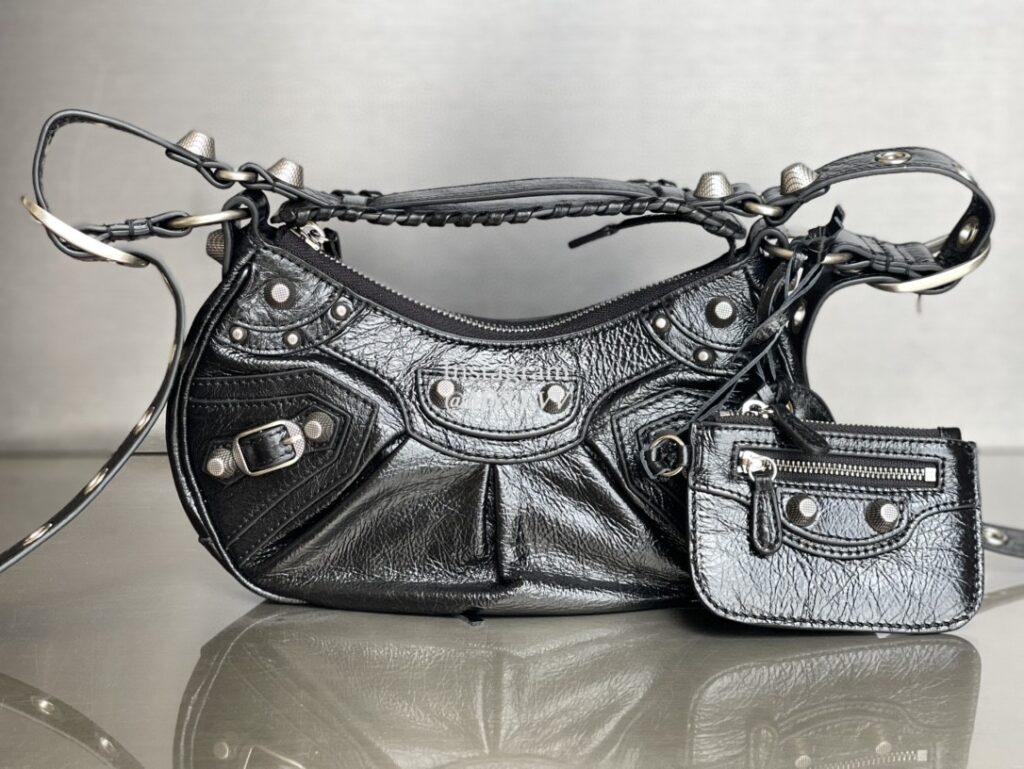 Top Quality Version:MYLLVV » Balenciaga Black Oil Wax Cowhide Leather Le Cagole XS Shoulder Bag 701