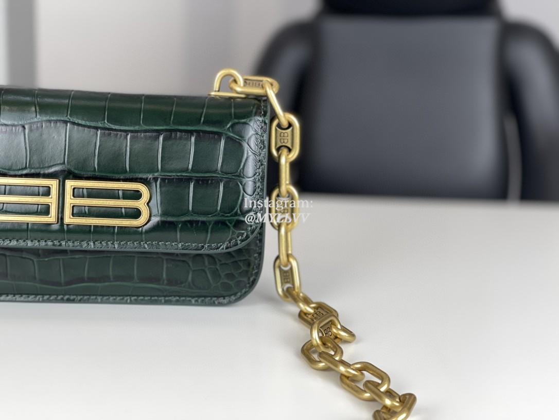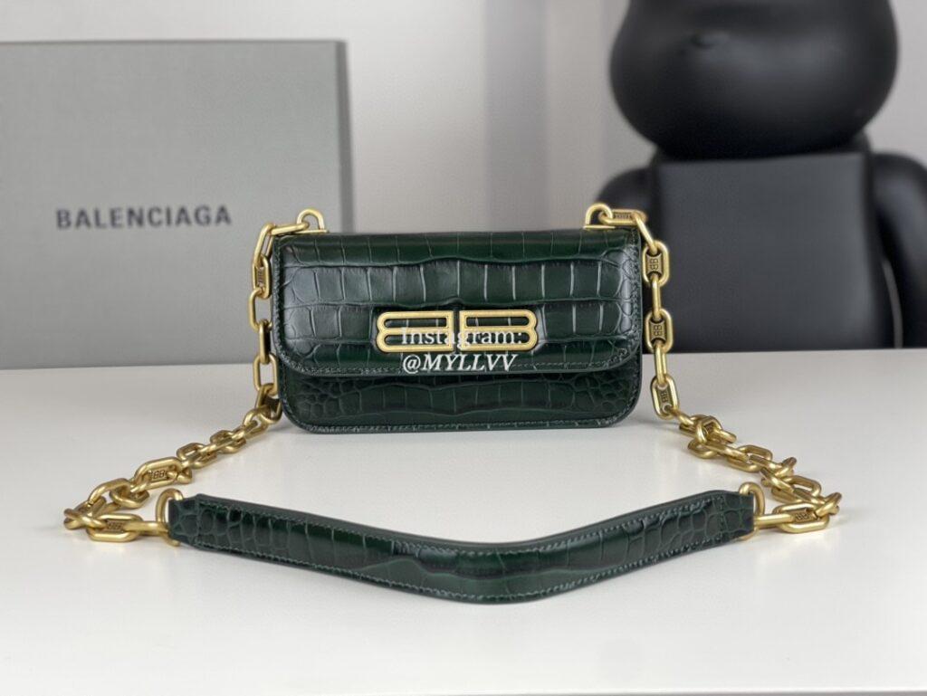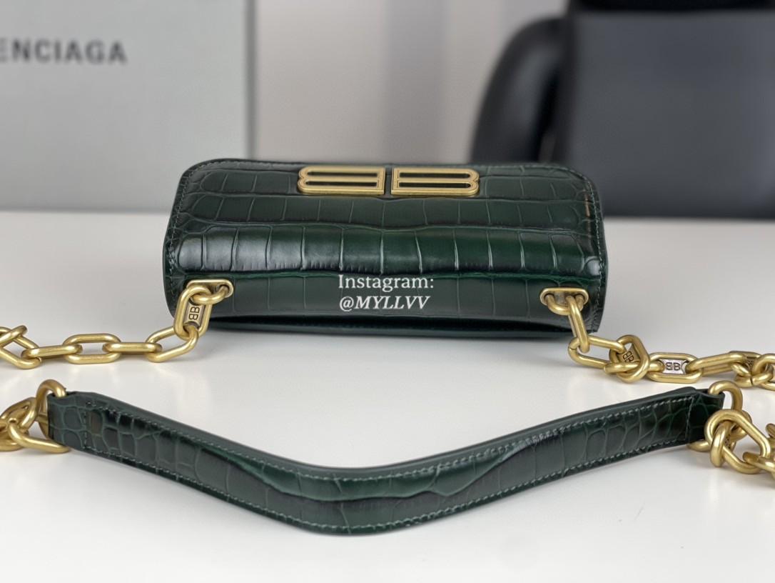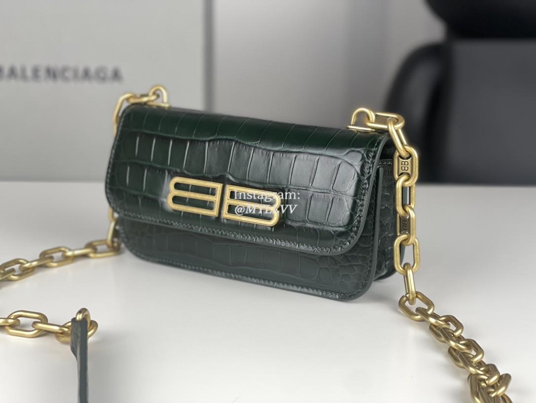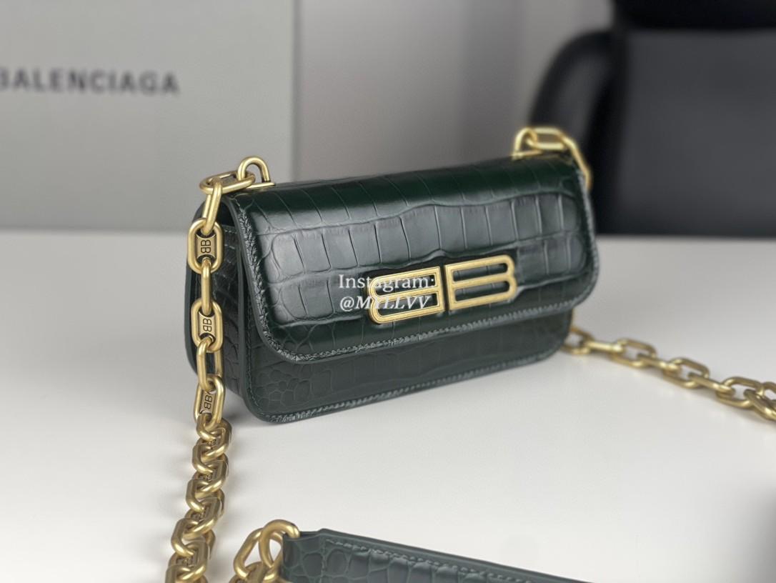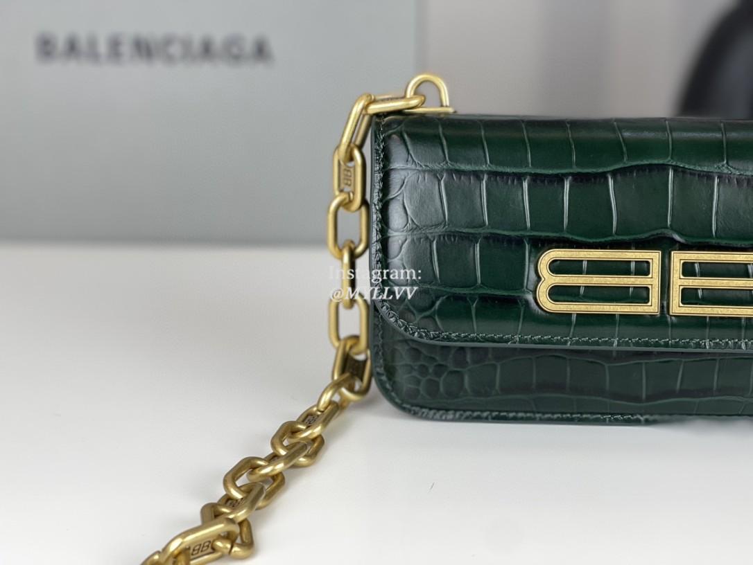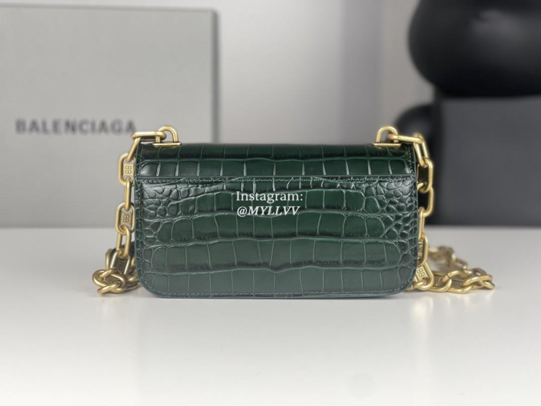 Top Quality Version:MYLLVV » Balenciaga Blackish Green Gold Crocodile Skin Gossip XS Wallet
