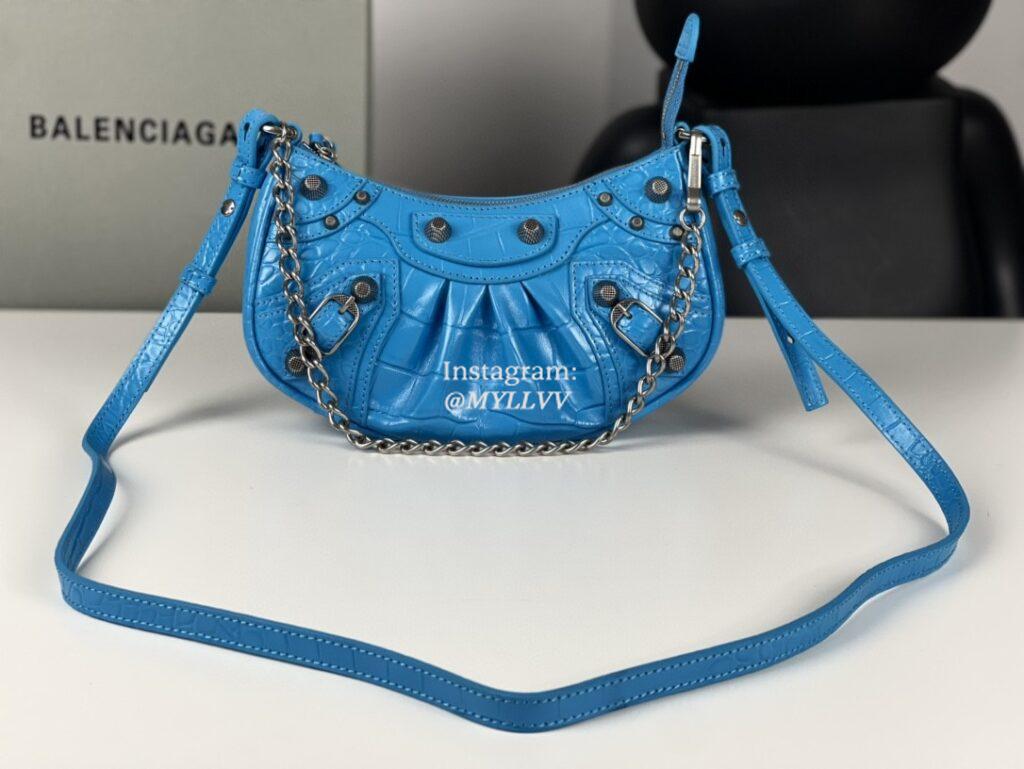 Top Quality Version:MYLLVV » Balenciaga Blue Crocodile Skin Le Cagole Mini Shoulder Bag 702