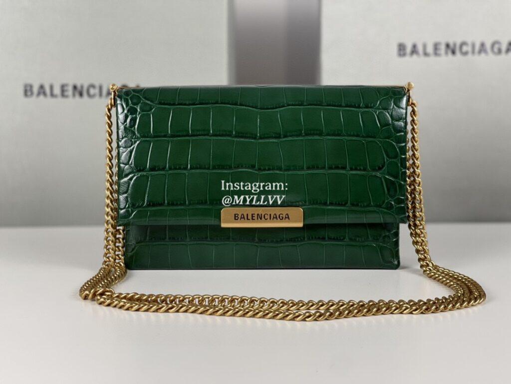 Top Quality Version:MYLLVV » Balenciaga Green Gold Crocodile Skin Triplet Chain Shoulder Bag 155
