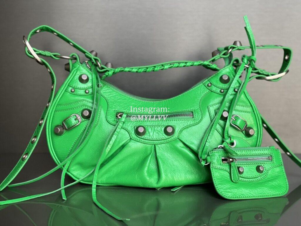 Top Quality Version:MYLLVV » Balenciaga Green Oil Wax Cowhide Leather Le Cagole Small Shoulder Bag 701