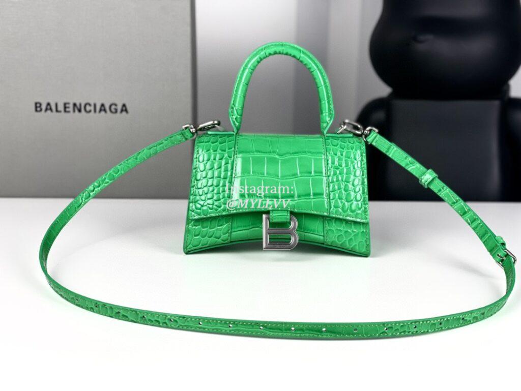 Top Quality Version:MYLLVV » Balenciaga Green Silver Crocodile Skin Hourglass XS Handbag 127