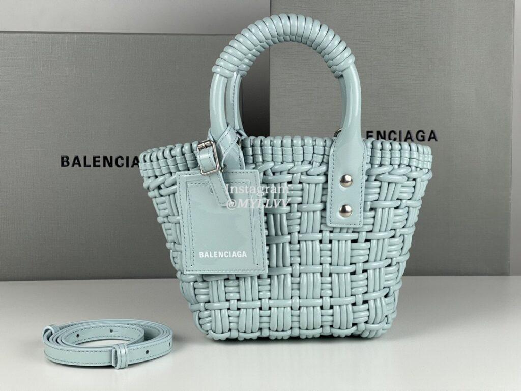 Top Quality Version:MYLLVV » Balenciaga Light Blue Varnished Fake Calfskin Bistro Nano Basket With Strap 080808