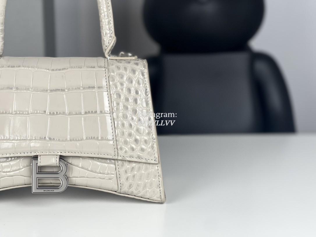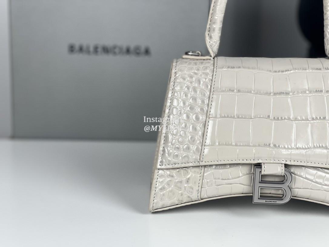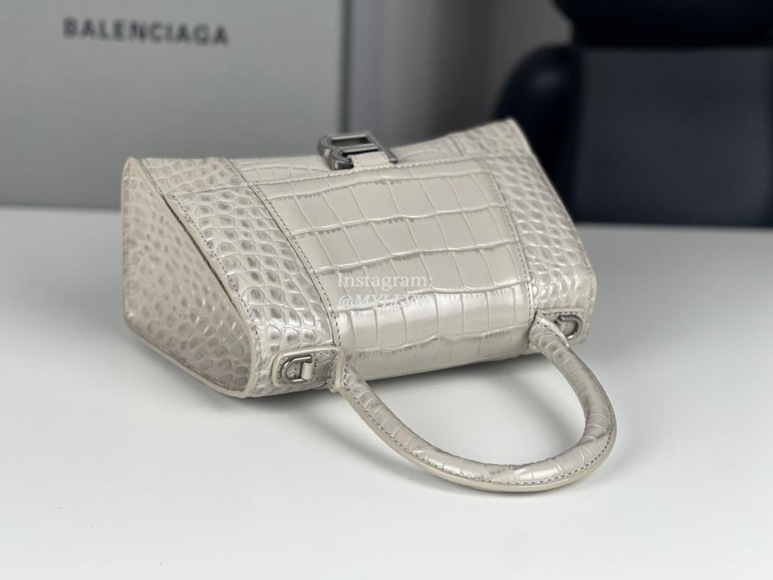 Top Quality Version:MYLLVV » Balenciaga Light Grey Crocodile Skin Hourglass Small Handbag 127