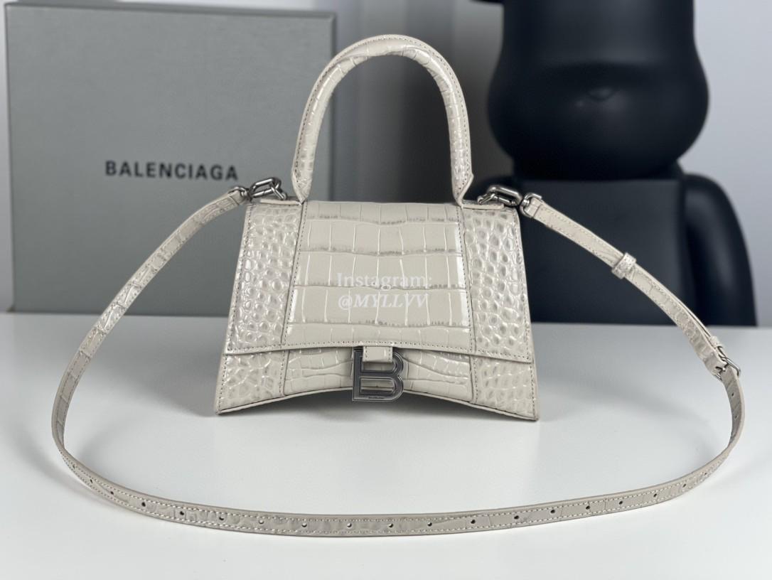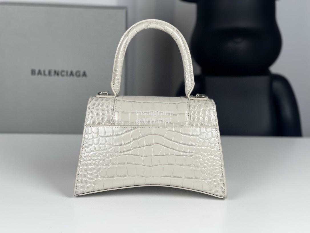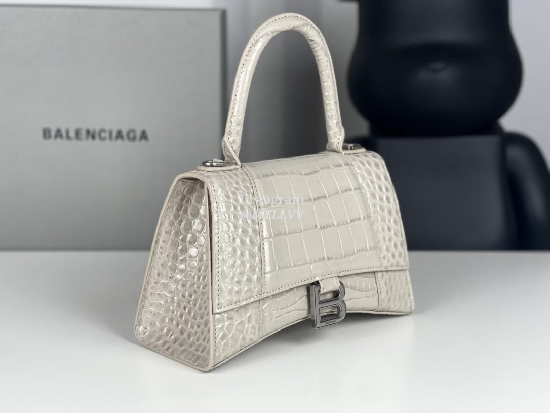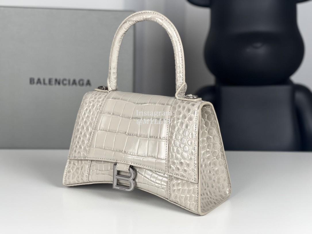 Top Quality Version:MYLLVV » Balenciaga Light Grey Crocodile Skin Hourglass Small Handbag 127