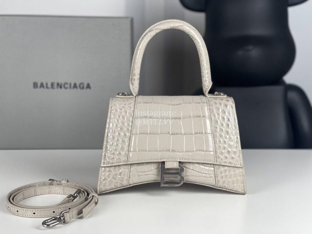 Top Quality Version:MYLLVV » Balenciaga Light Grey Crocodile Skin Hourglass Small Handbag 127