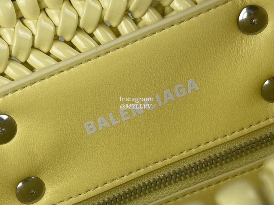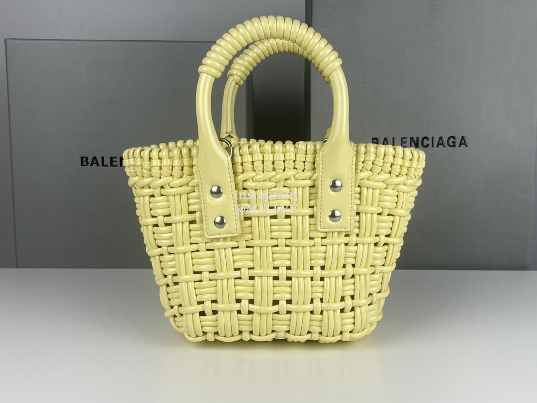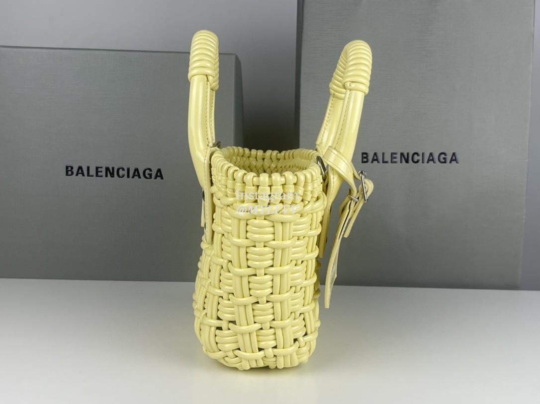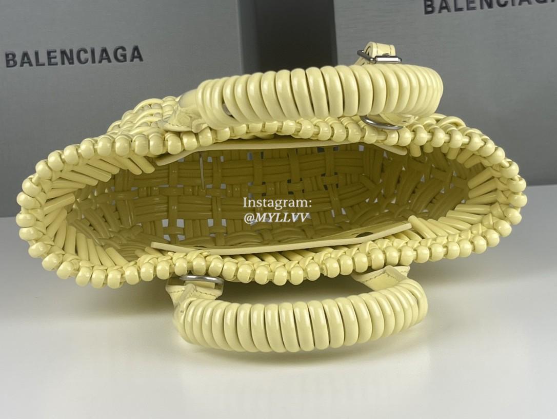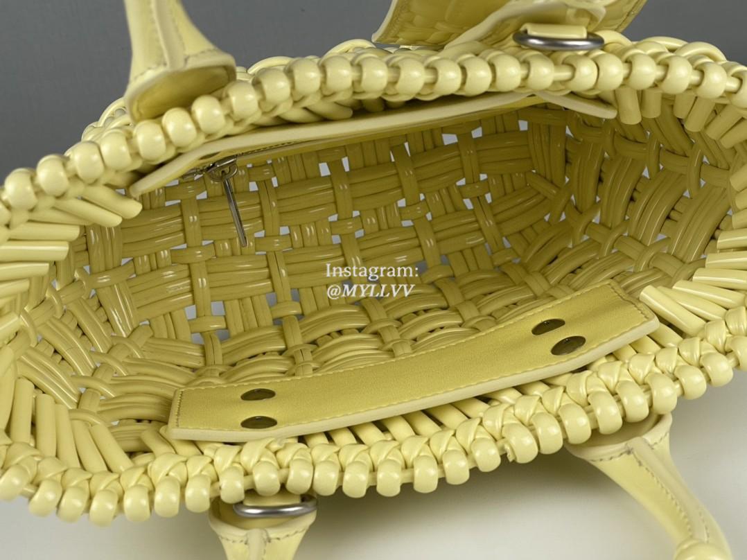 Top Quality Version:MYLLVV » Balenciaga Light Yellow Varnished Fake Calfskin Bistro Nano Basket With Strap 080808