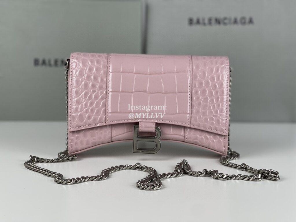 Top Quality Version:MYLLVV » Balenciaga Pink Crocodile Skin Hourglass Wallet With Chain 199