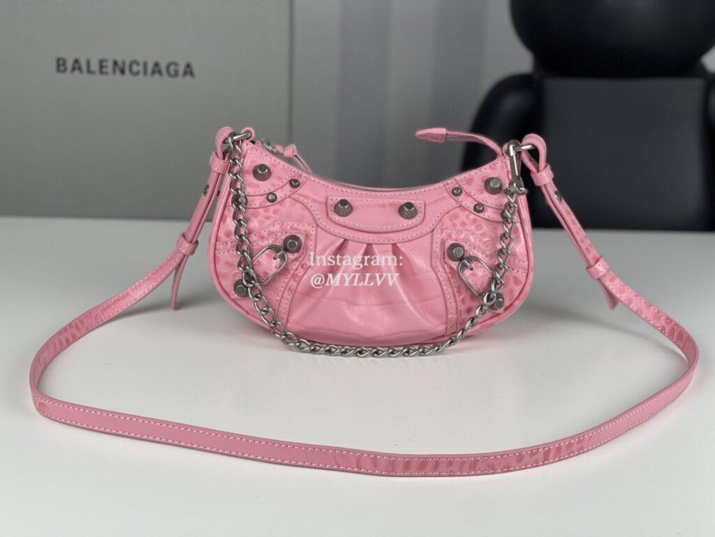 Top Quality Version:MYLLVV » Balenciaga Pink Crocodile Skin Le Cagole Mini Shoulder Bag 702