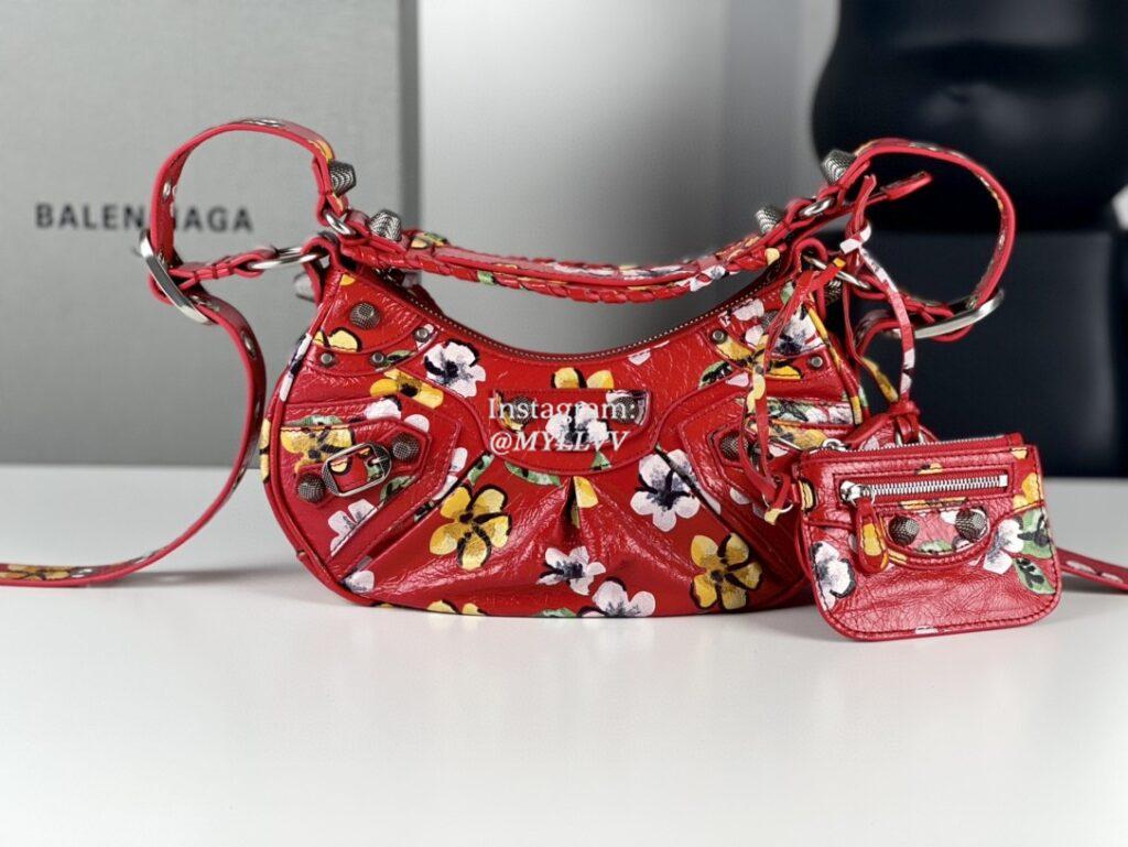 Top Quality Version:MYLLVV » Balenciaga Red Flower Oil Wax Cowhide Leather Le Cagole XS Shoulder Bag 701