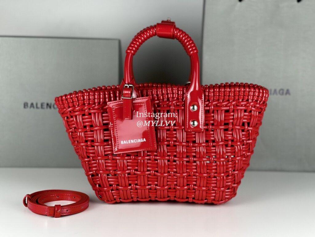Top Quality Version:MYLLVV » Balenciaga Red Varnished Fake Calfskin Bistro XS Basket With Strap 080807
