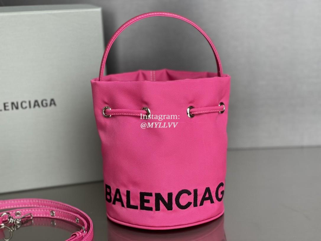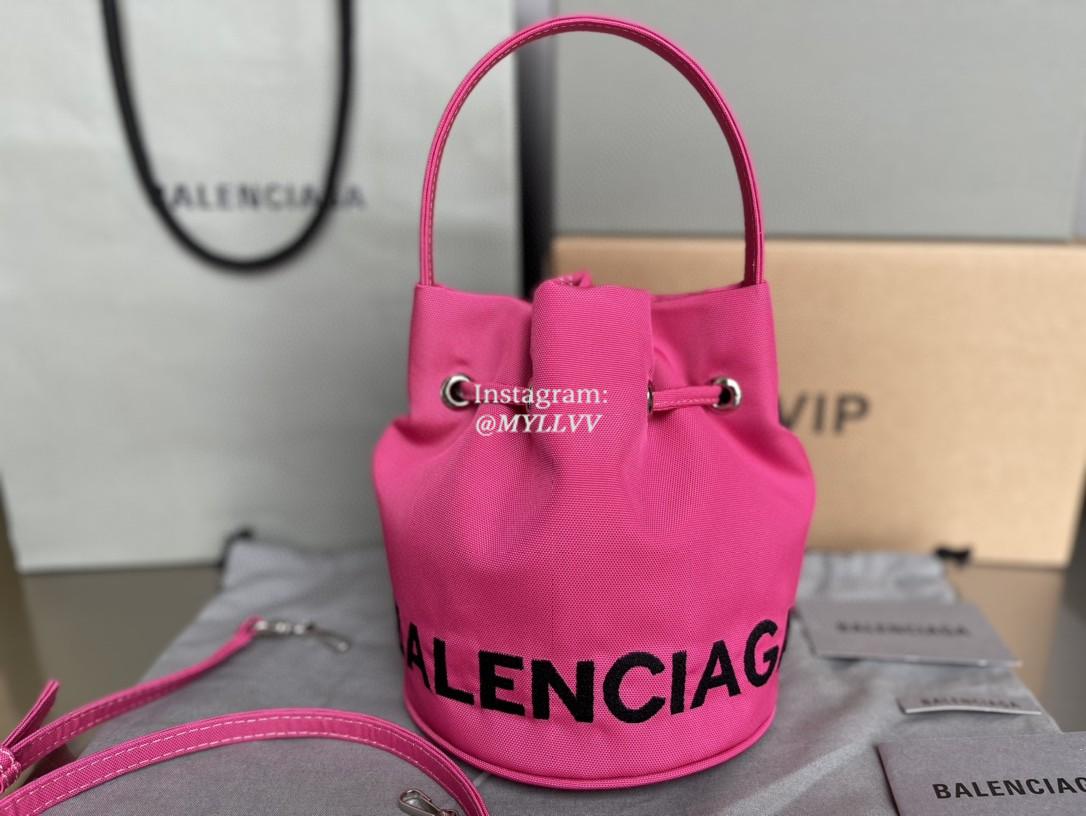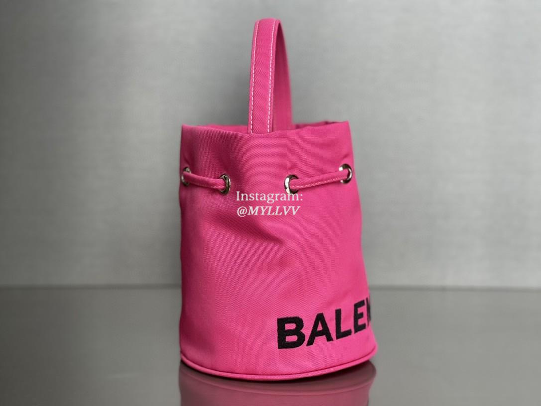 Dimension: 21.0 × 18.0 × 15.0 cm Top Quality Version:MYLLVV » Balenciaga Rose Red Nylon Bucket Bag 104