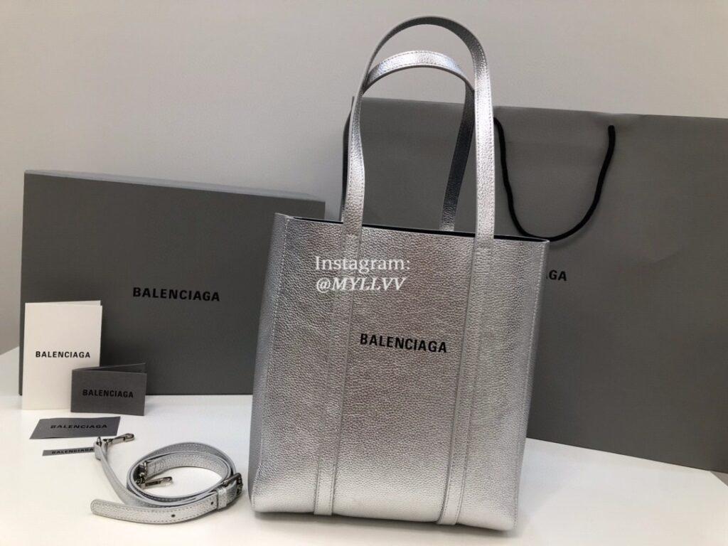 Top Quality Version:MYLLVV » Balenciaga Silver Cowhide Leather Everyday XS Tote Bag 811750