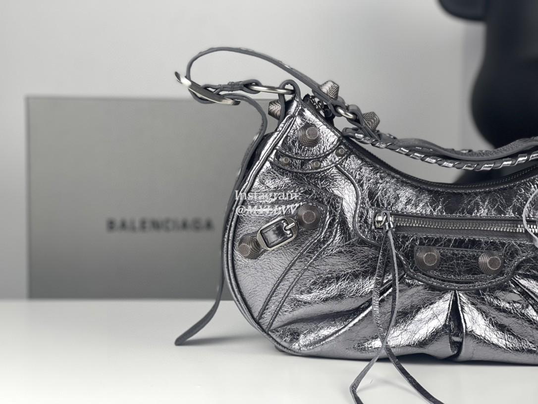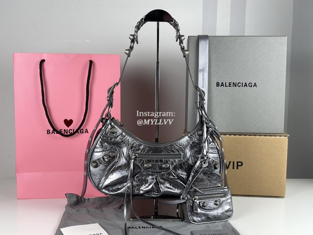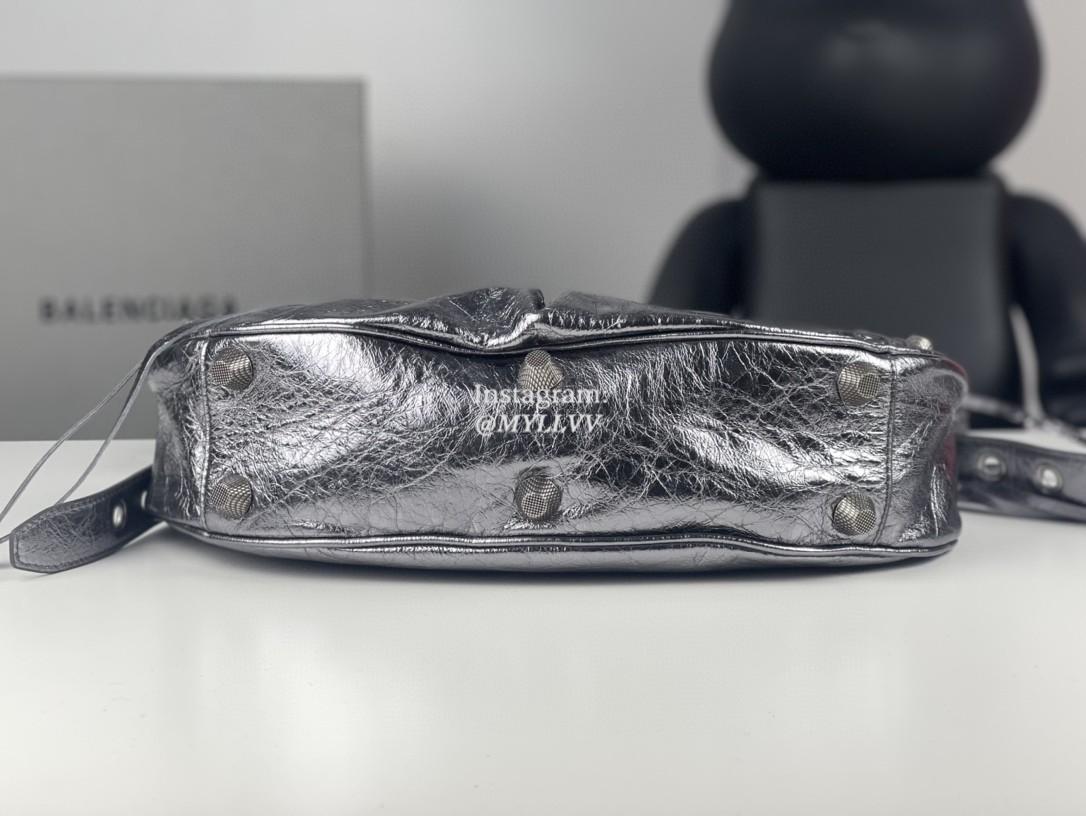 Top Quality Version:MYLLVV » Balenciaga Silver Cowhide Leather Le Cagole Small Shoulder Bag 701
