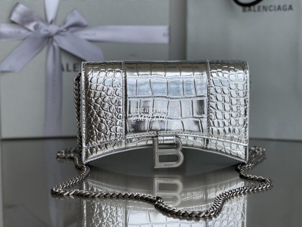 Top Quality Version:MYLLVV » Balenciaga Silver Crocodile Skin Hourglass Wallet With Chain 199