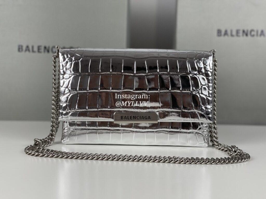 Top Quality Version:MYLLVV » Balenciaga Silver Crocodile Skin Triplet Chain Shoulder Bag 155