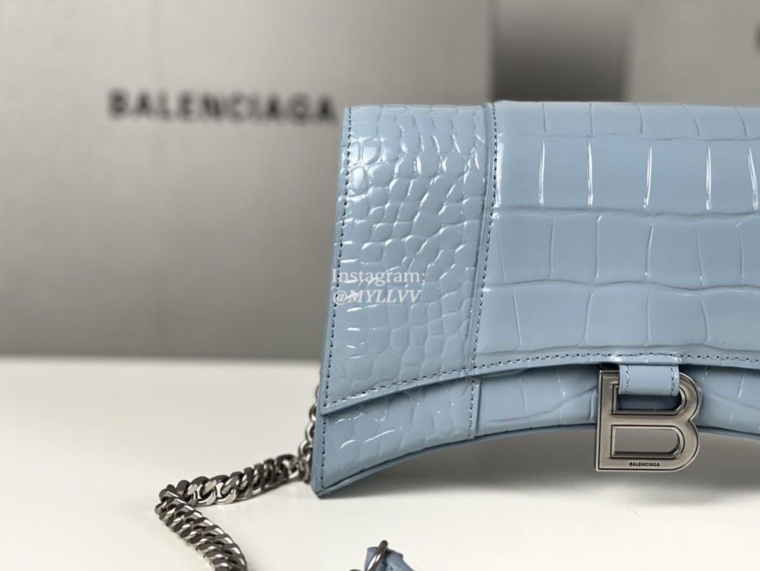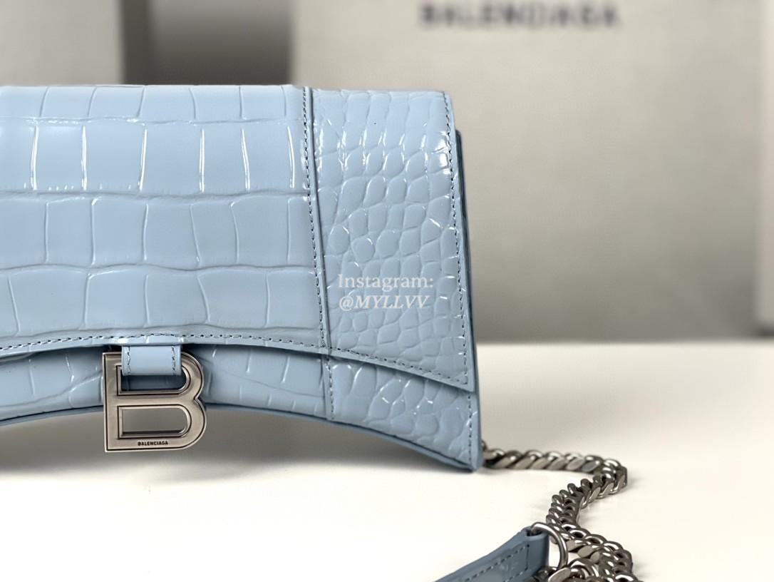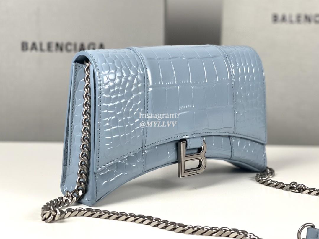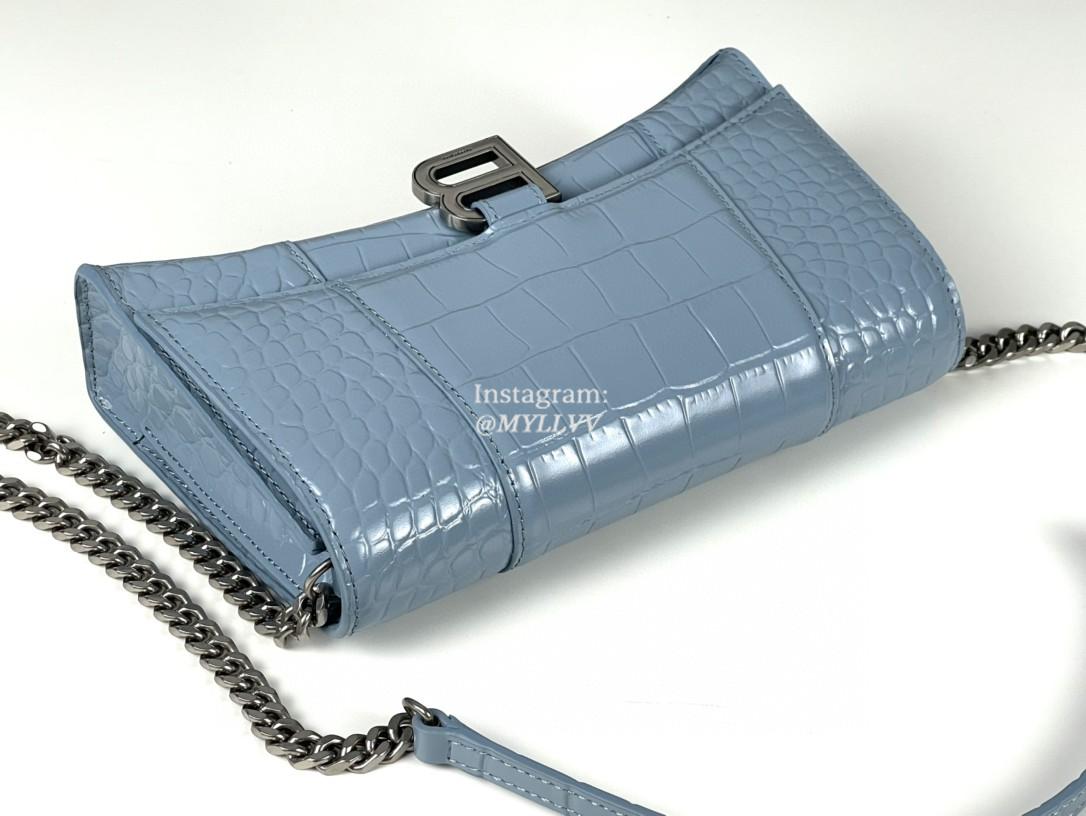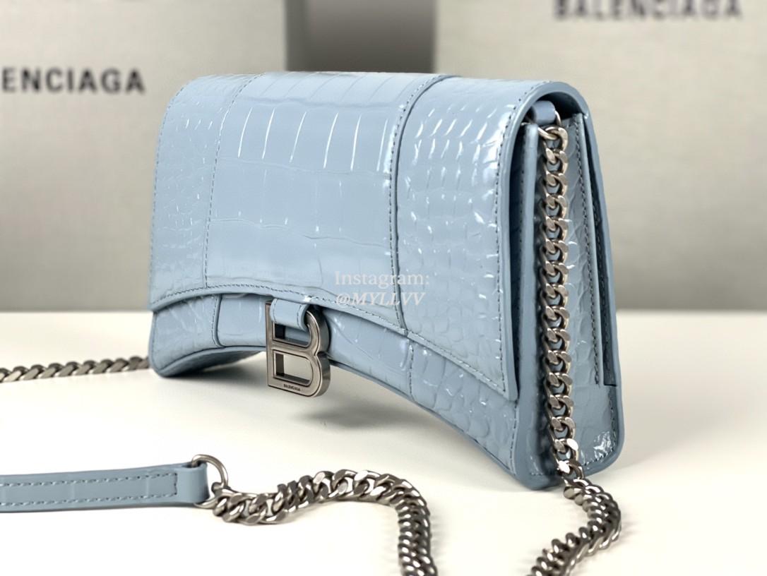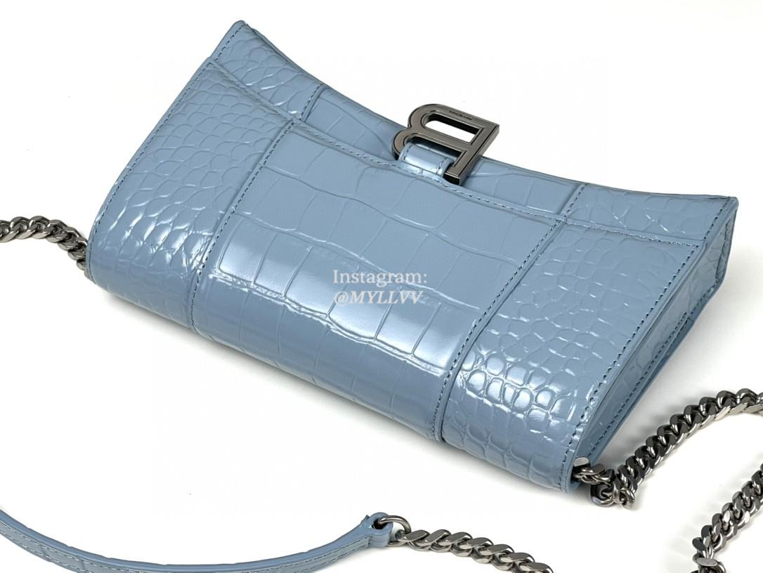 Top Quality Version:MYLLVV » Balenciaga Sky Blue Crocodile Skin Hourglass Wallet On Chain 198