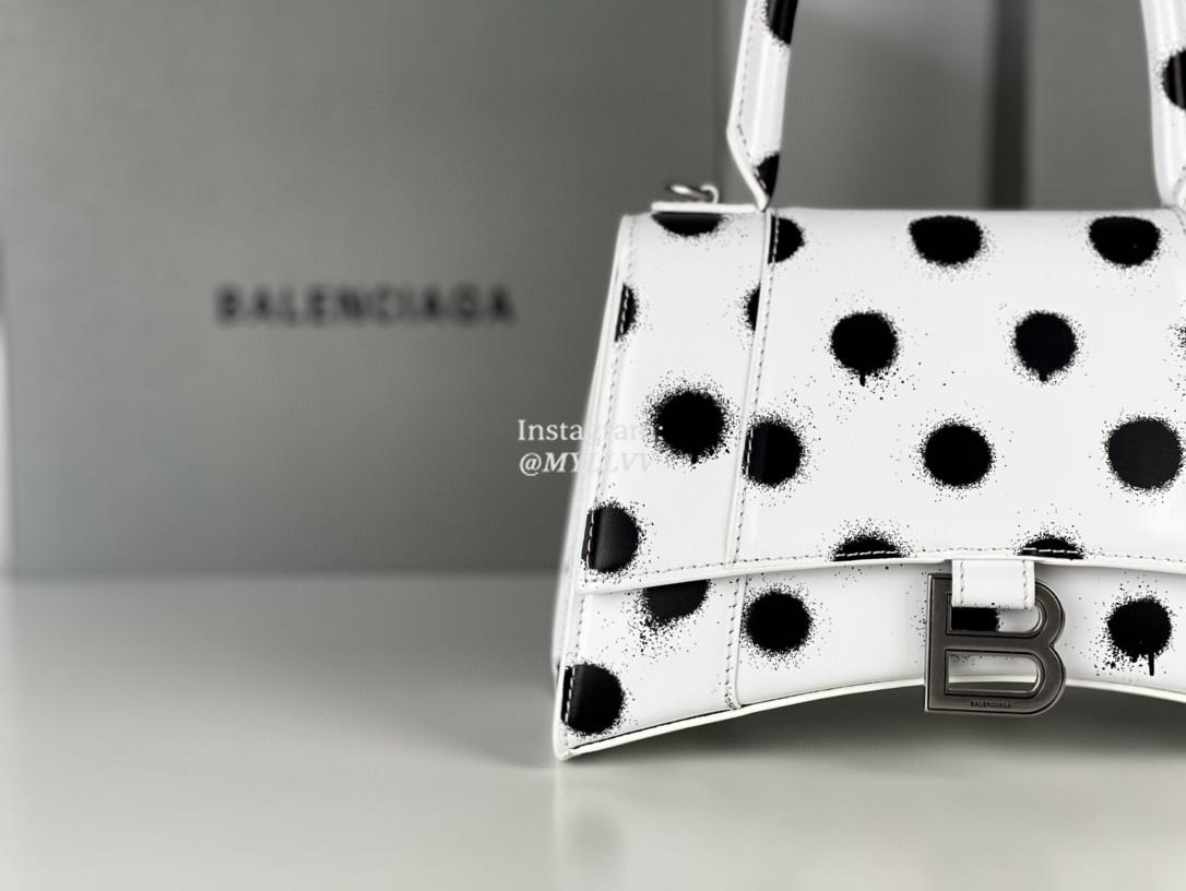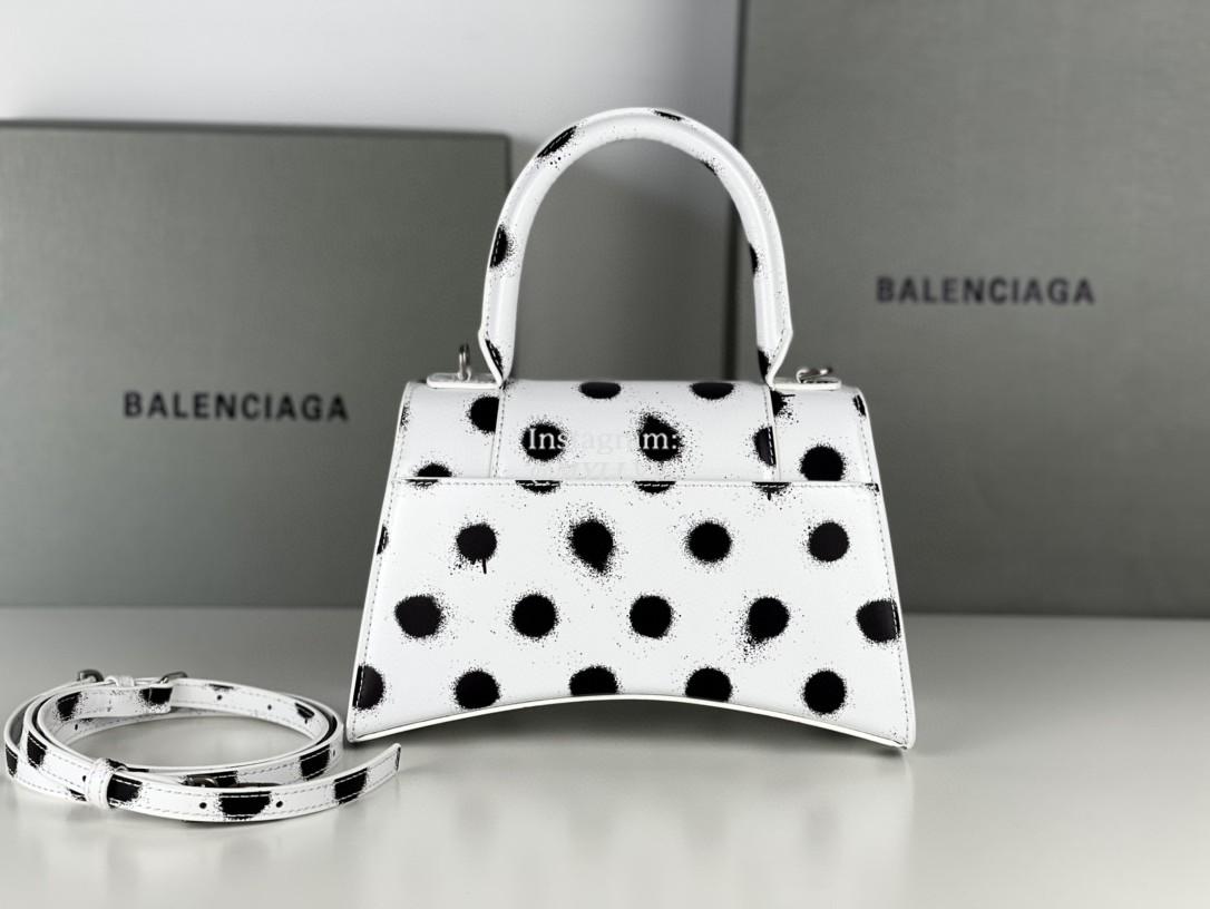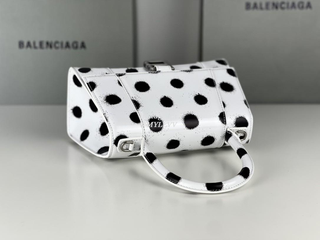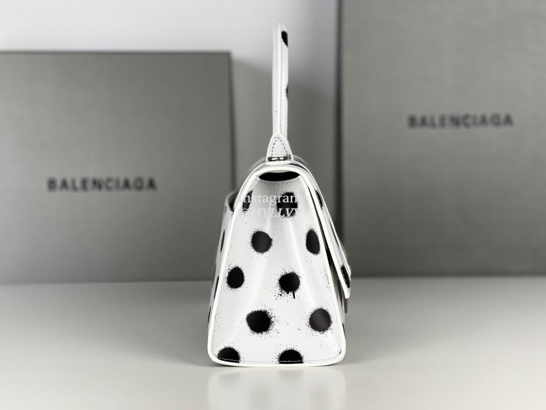 Top Quality Version:MYLLVV » Balenciaga White Black Cowhide Leather Hourglass Small Handbag 127