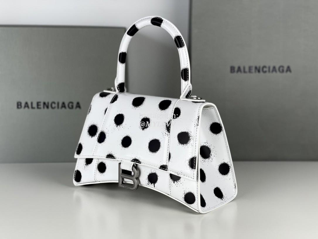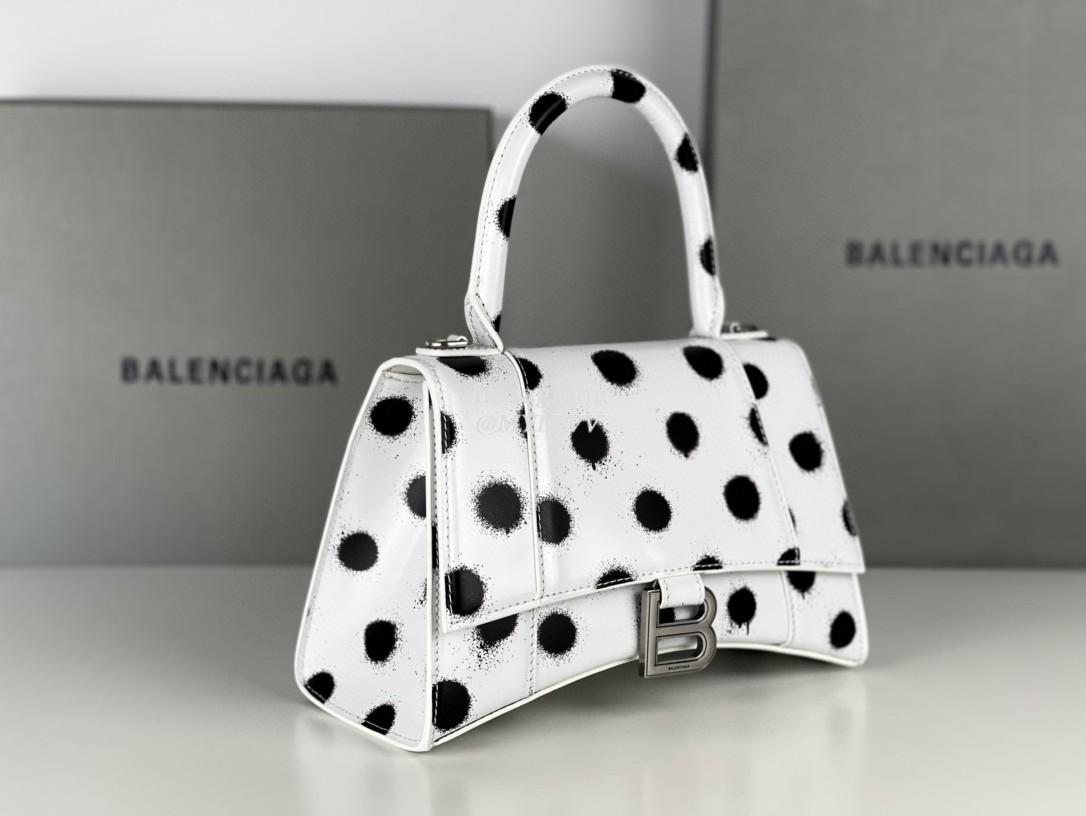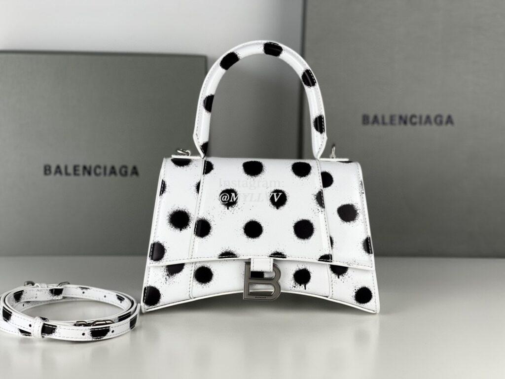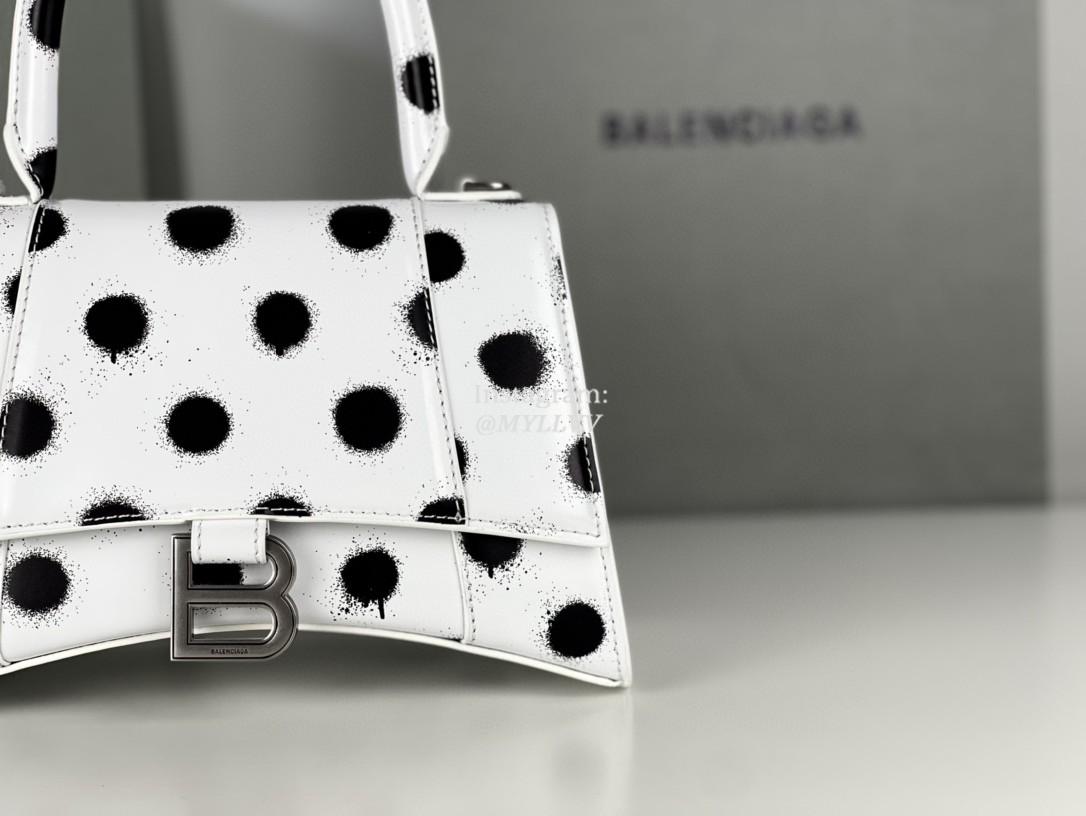 Top Quality Version:MYLLVV » Balenciaga White Black Cowhide Leather Hourglass Small Handbag 127