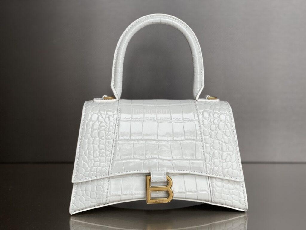 Top Quality Version:MYLLVV » Balenciaga White Gold Crocodile Skin Hourglass Small Handbag 127