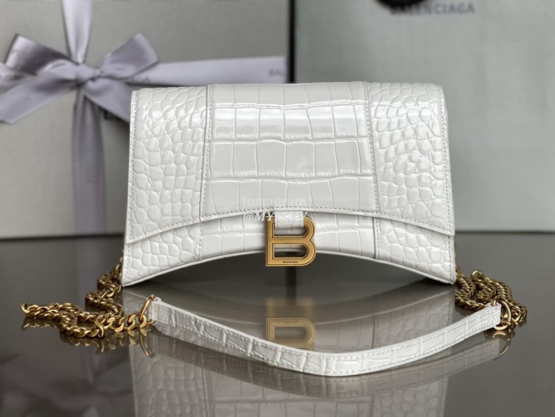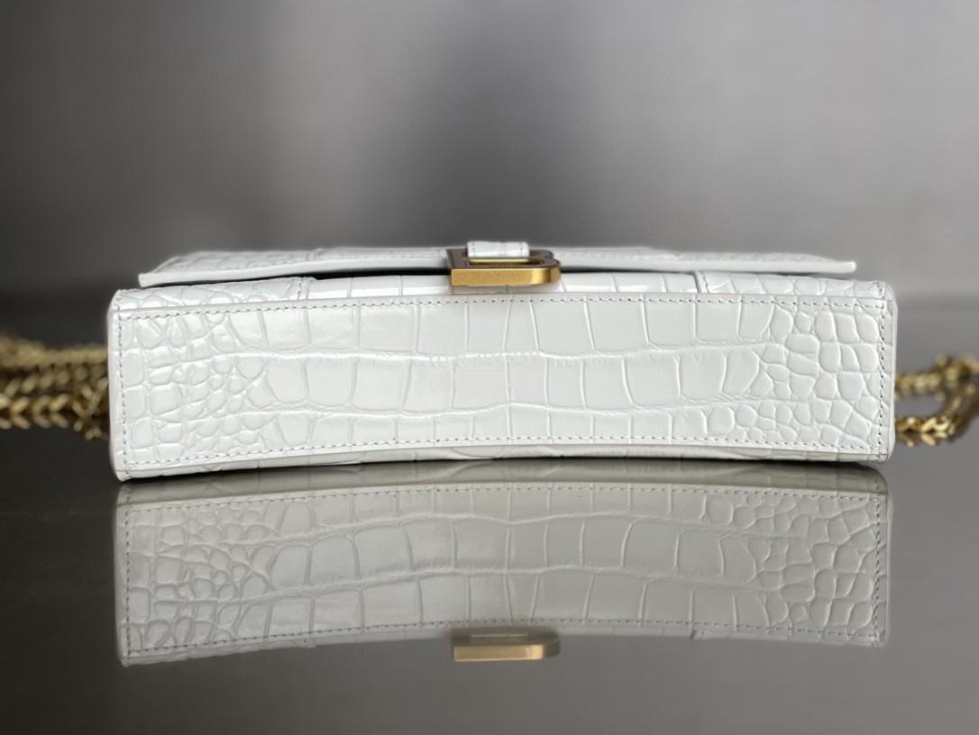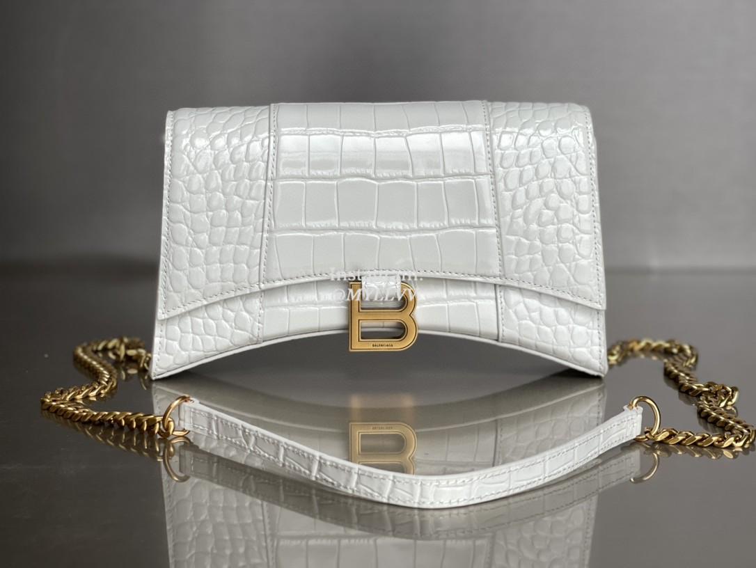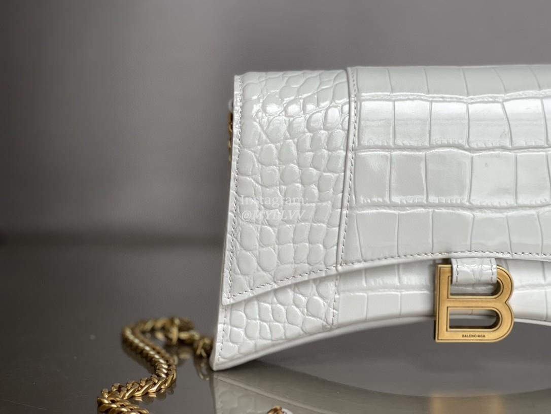 Top Quality Version:MYLLVV » Balenciaga White Gold Crocodile Skin Hourglass Wallet On Chain 198