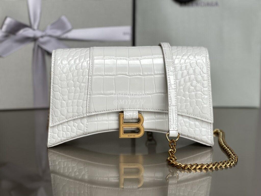 Top Quality Version:MYLLVV » Balenciaga White Gold Crocodile Skin Hourglass Wallet On Chain 198