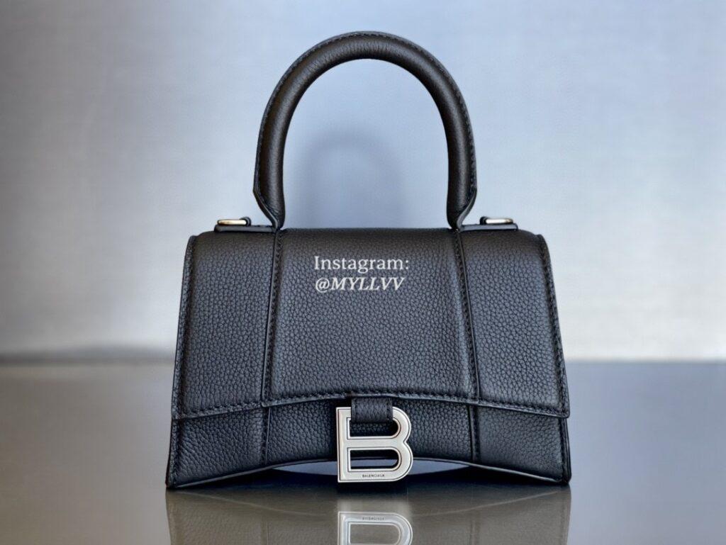 Top Quality Version:MYLLVV » Balenciaga Black Litchi Cowhide Leather Hourglass XS Handbag 127