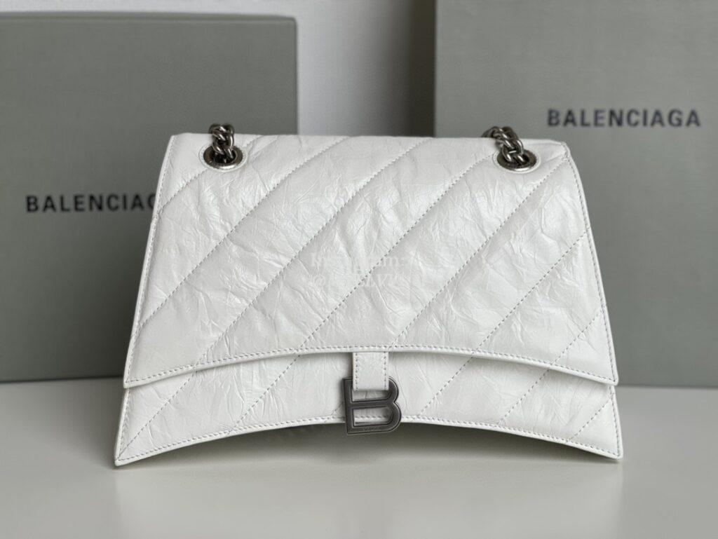 Top Quality Version:MYLLVV » Balenciaga White Oil Wax Cowhide Leather Crush Medium Chain Bag