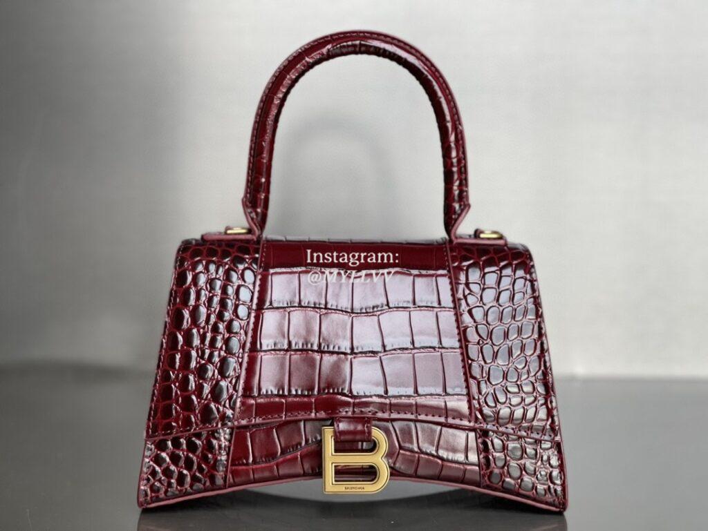 Top Quality Version:MYLLVV » Balenciaga Wine Red Crocodile Skin Hourglass Small Handbag 127