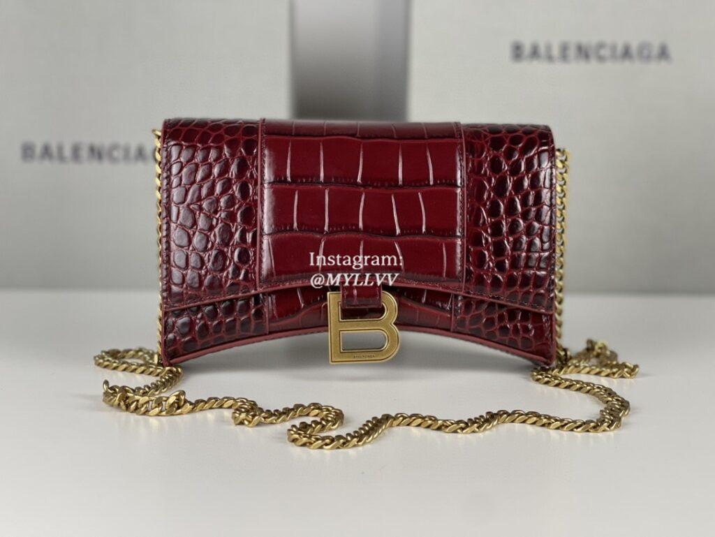 Top Quality Version:MYLLVV » Balenciaga Wine Red Crocodile Skin Hourglass Wallet With Chain 199