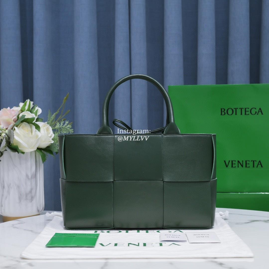 Top Quality Version:MYLLVV » Bottega Veneta Arco Weave Lambskin Small Tote Bag Dark Green 9893