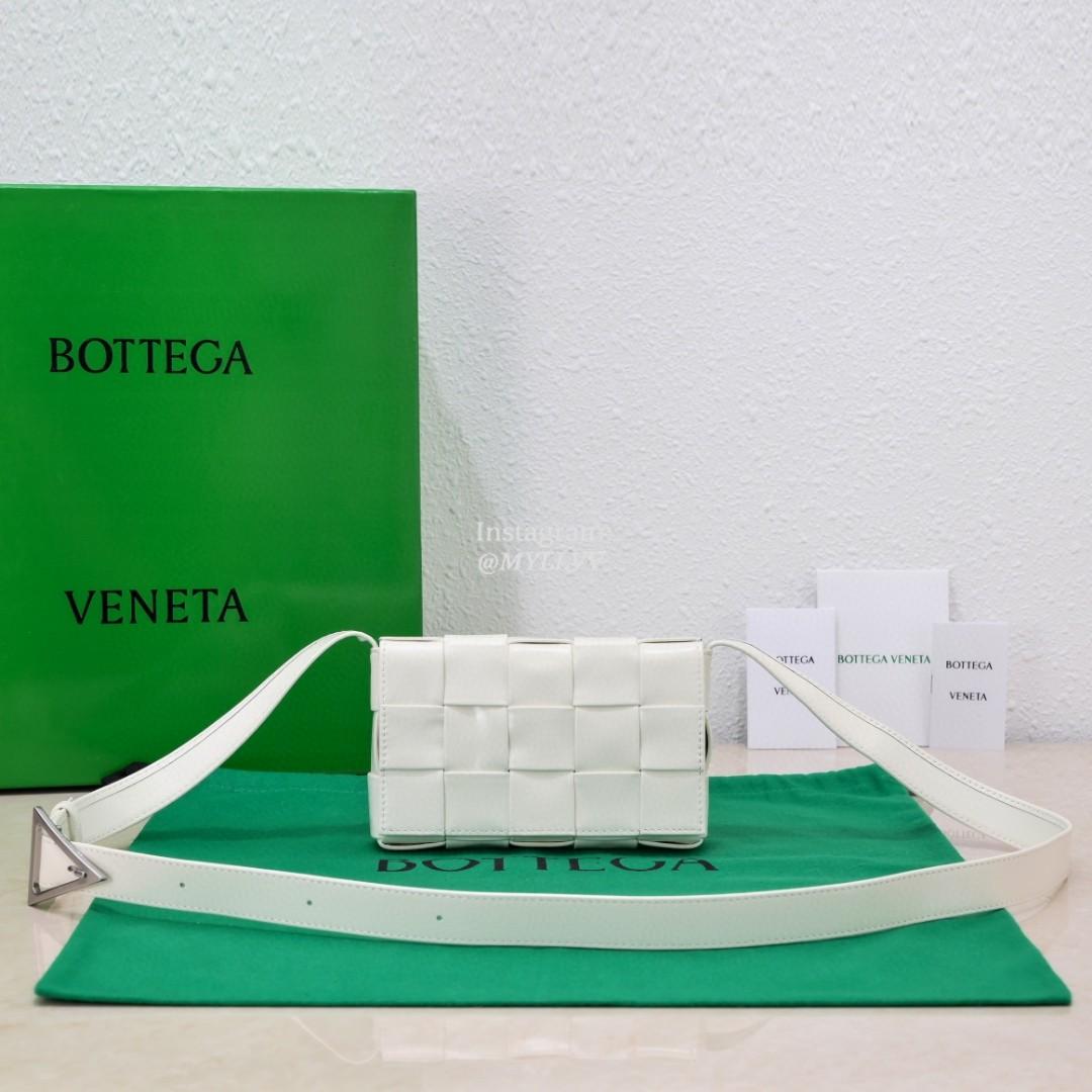 Top Quality Version:MYLLVV » Bottega Veneta Cassette Weave Oil Wax Lambskin Medium Shoulder Bag White 7587